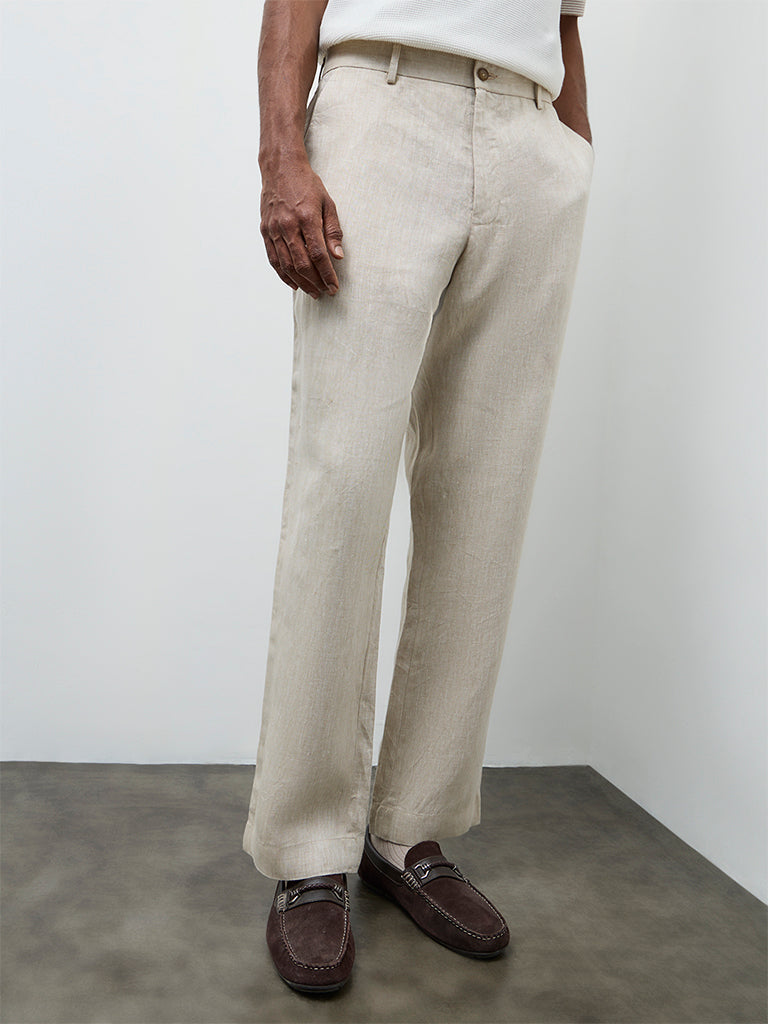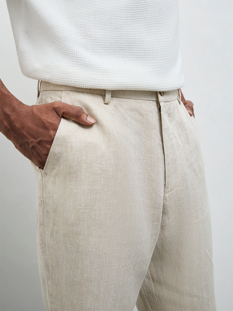 Ascot Light Beige Relaxed-Fit Mid-Rise Trousers