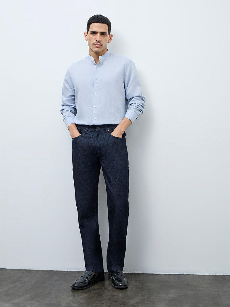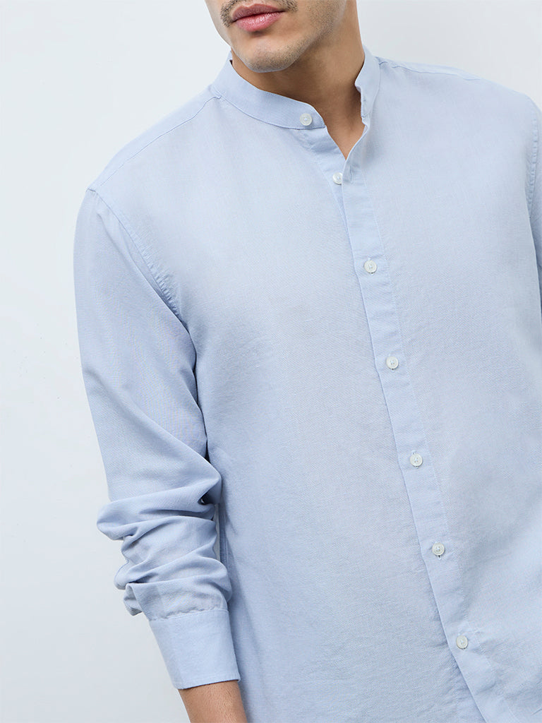 Ascot brings a clean essential with this light blue shirt from Ascot, offering an understated appeal. Structured in a relaxed fit, it features a mandarin neck, a buttoned placket and full sleeves for a streamlined finish. Crafted from a soft lightweight fabric, it provides a breathable feel ideal for all day wear.