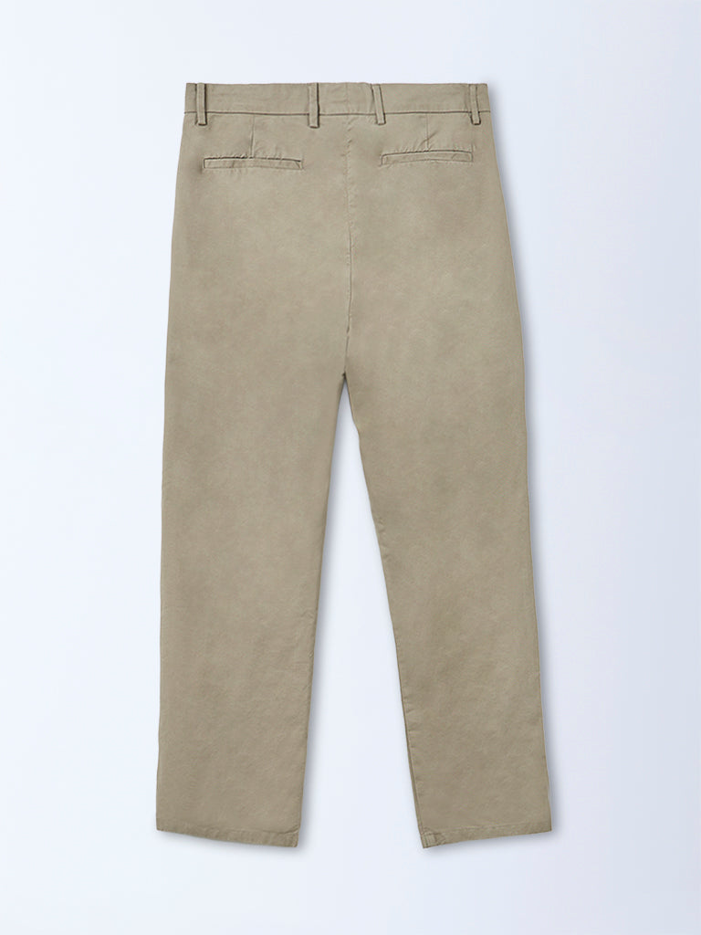 Ascot Light Taupe Mid-Rise Relaxed Fit Cotton-Blend Trousers
