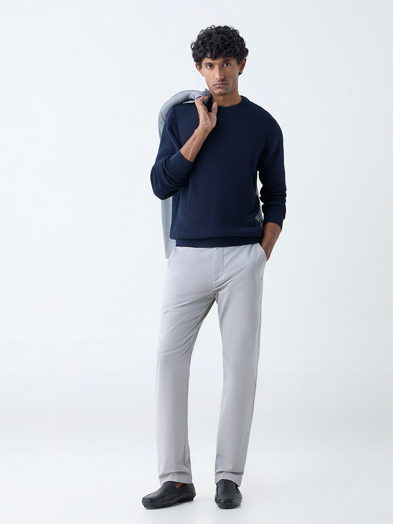 Ascot Navy Knit-Textured Relaxed-Fit Cotton Sweater