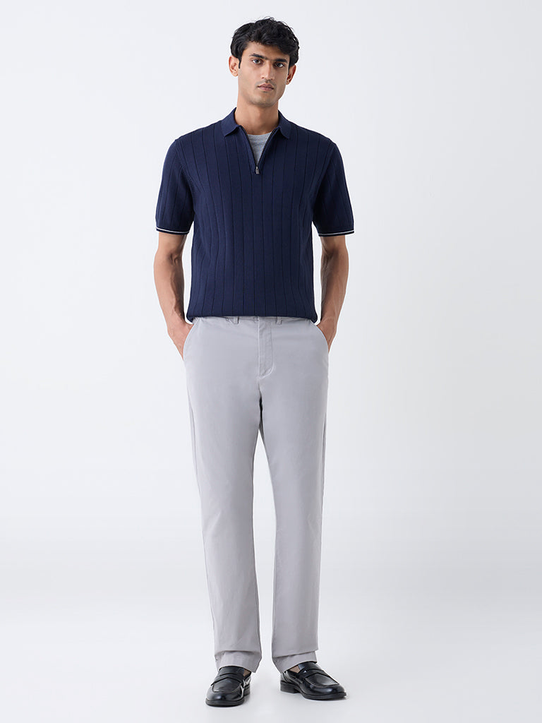Ascot reimagines casual dressing with this navy polo t-shirt, spun from a soft cotton-blend fabric and finished with a sleek quarter-zip collar for a tailored touch. Its ribbed texture and short sleeves create a streamlined profile.