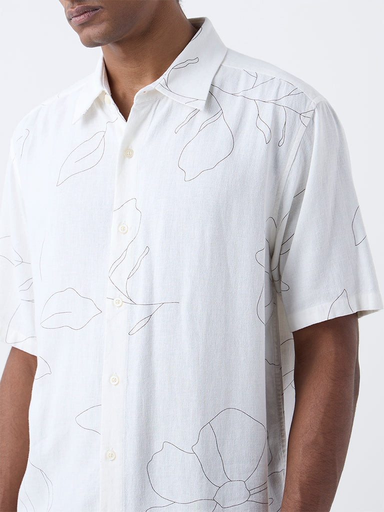 Ascot Off-White Abstract Pattern Relaxed-Fit Shirt