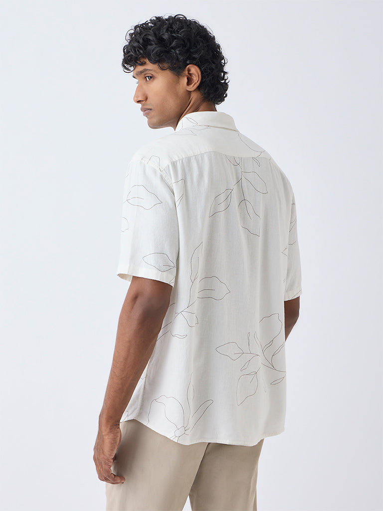 Ascot Off-White Floral Design Relaxed-Fit Shirt
