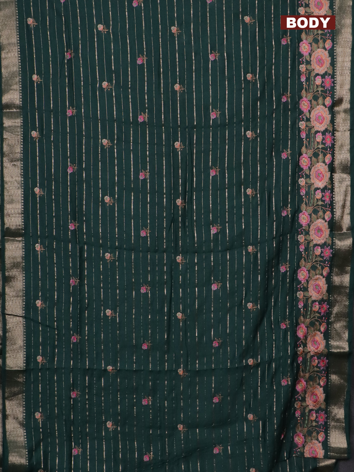 Assam silk saree bottle green with allover zari weaves & floral embroidery work buttas and zari woven border
