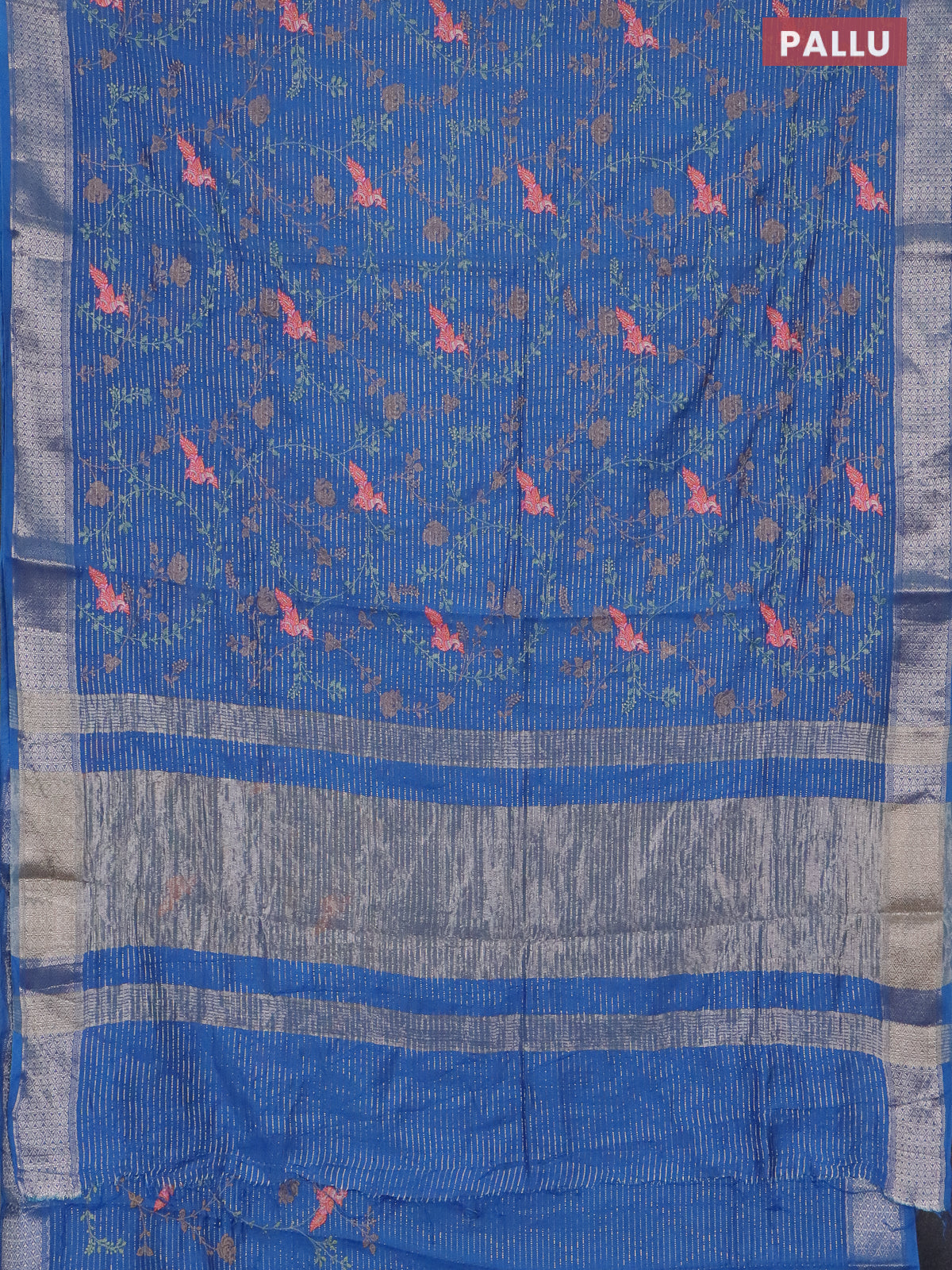 Assam silk saree cs blue with allover zari weaves & embroidery work and zari woven border