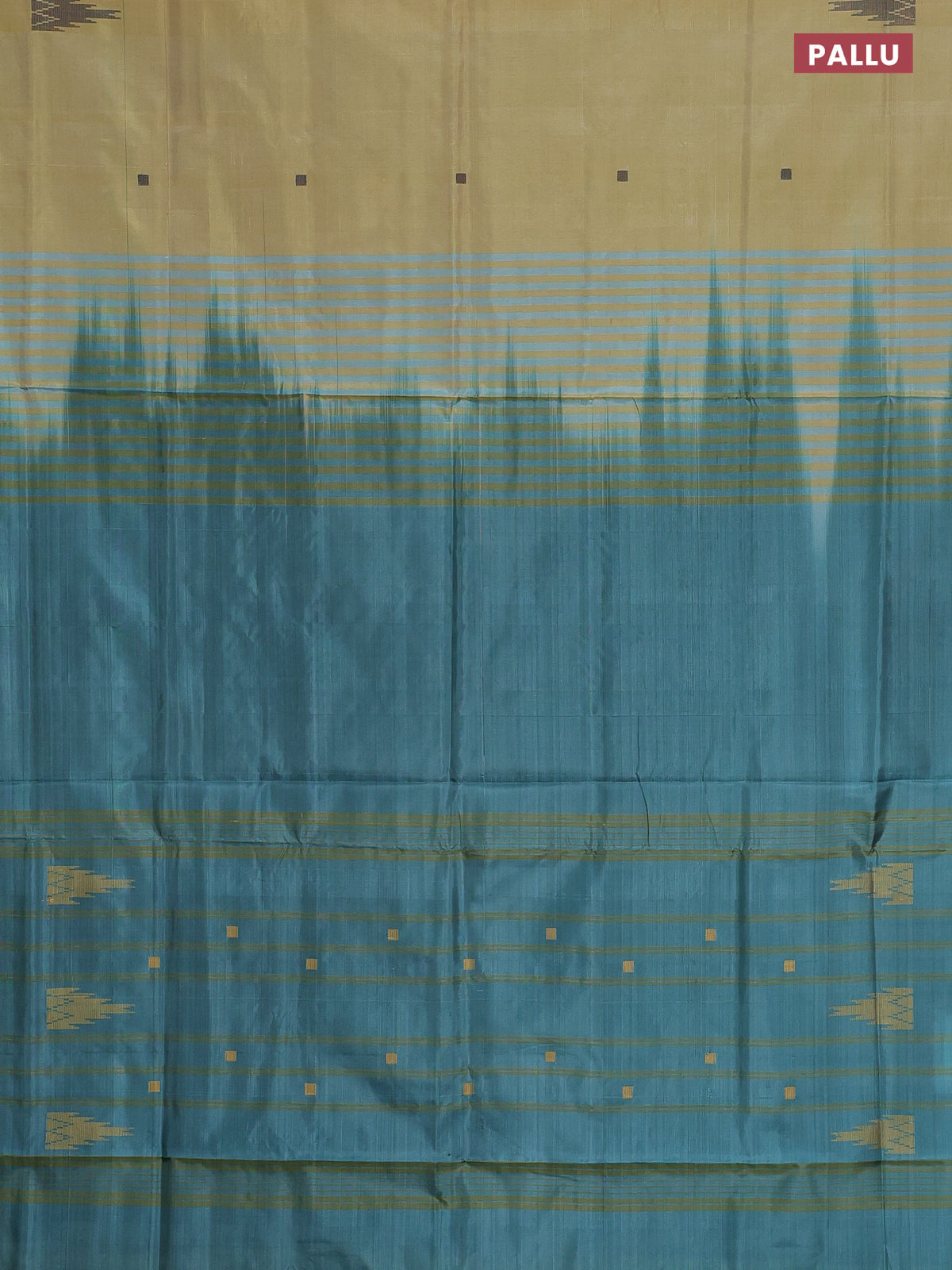 Banana pith saree pale yellow and teal green shade with thread woven buttas in borderless style