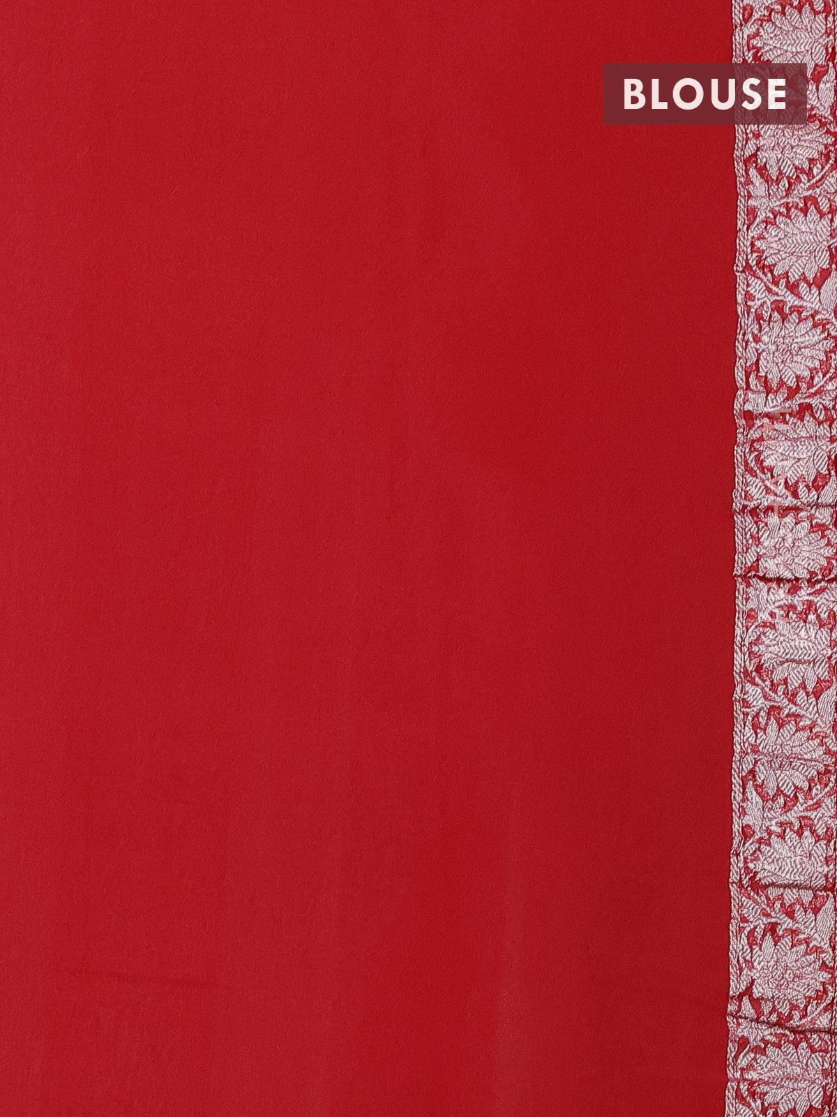 Banarasi chiffon silk saree pastel pink and red with silver zari woven buttas and floral silver zari woven border