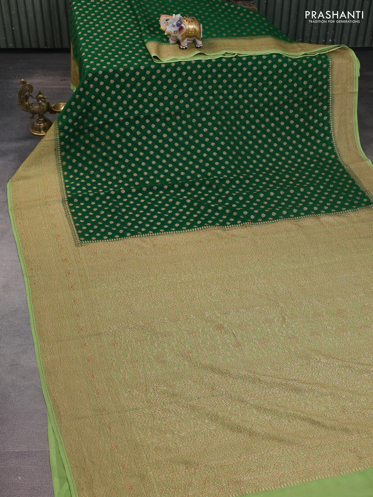 Banarasi georgette saree green and pista green with allover woven buttas and woven border