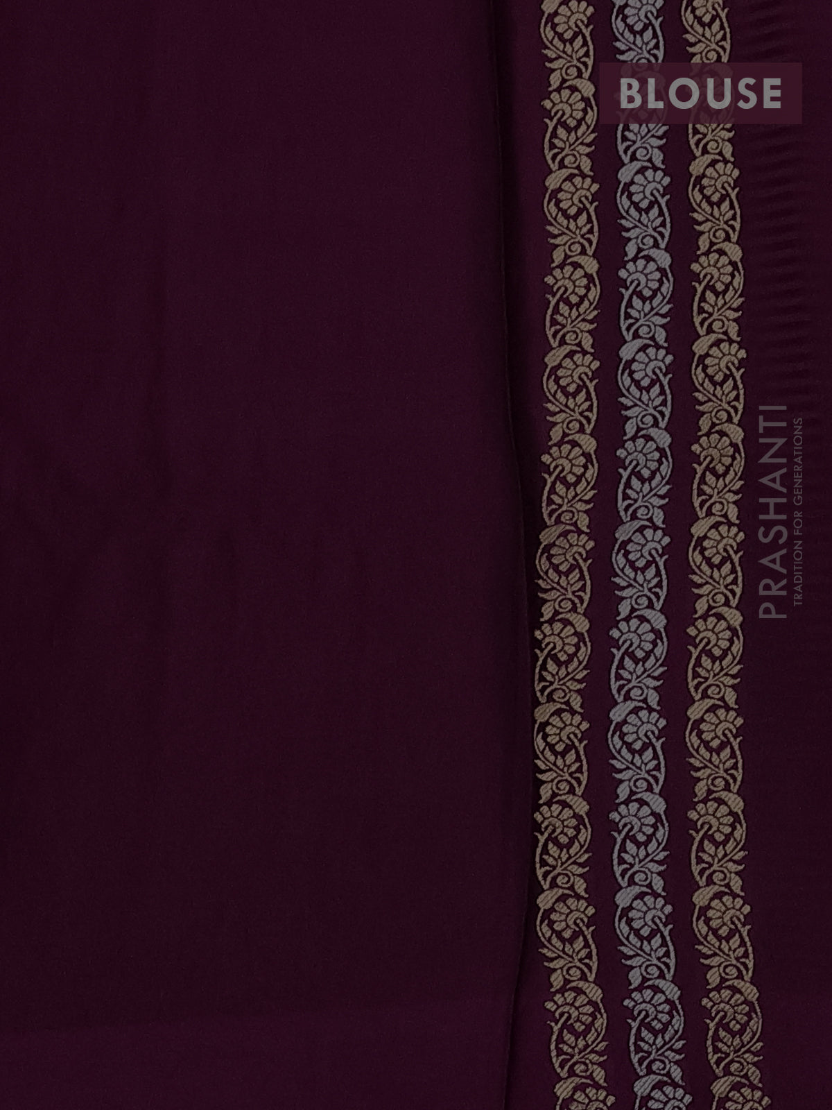 Banarasi mushru silk saree wine shade with allover stripes pattern & zari buttas and satin border