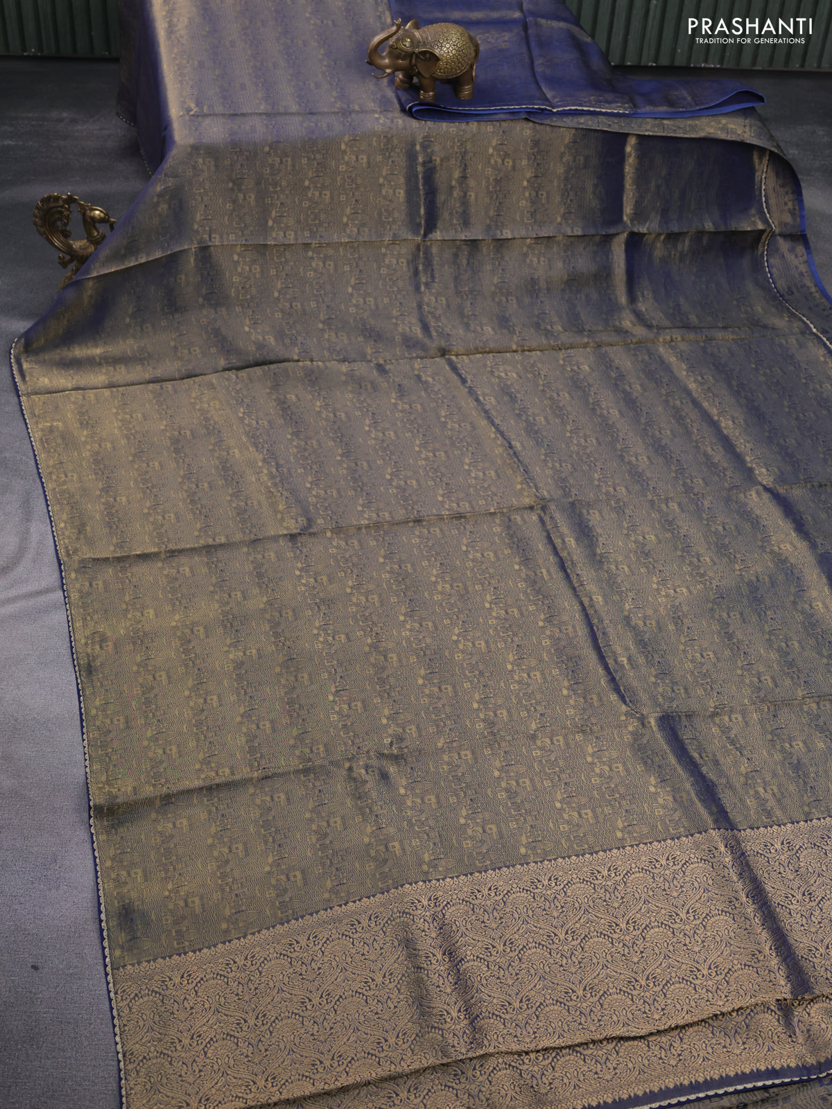 Banarasi semi crepe saree dual shade of peacock blue with allover zari woven brocade weaves and lace work border
