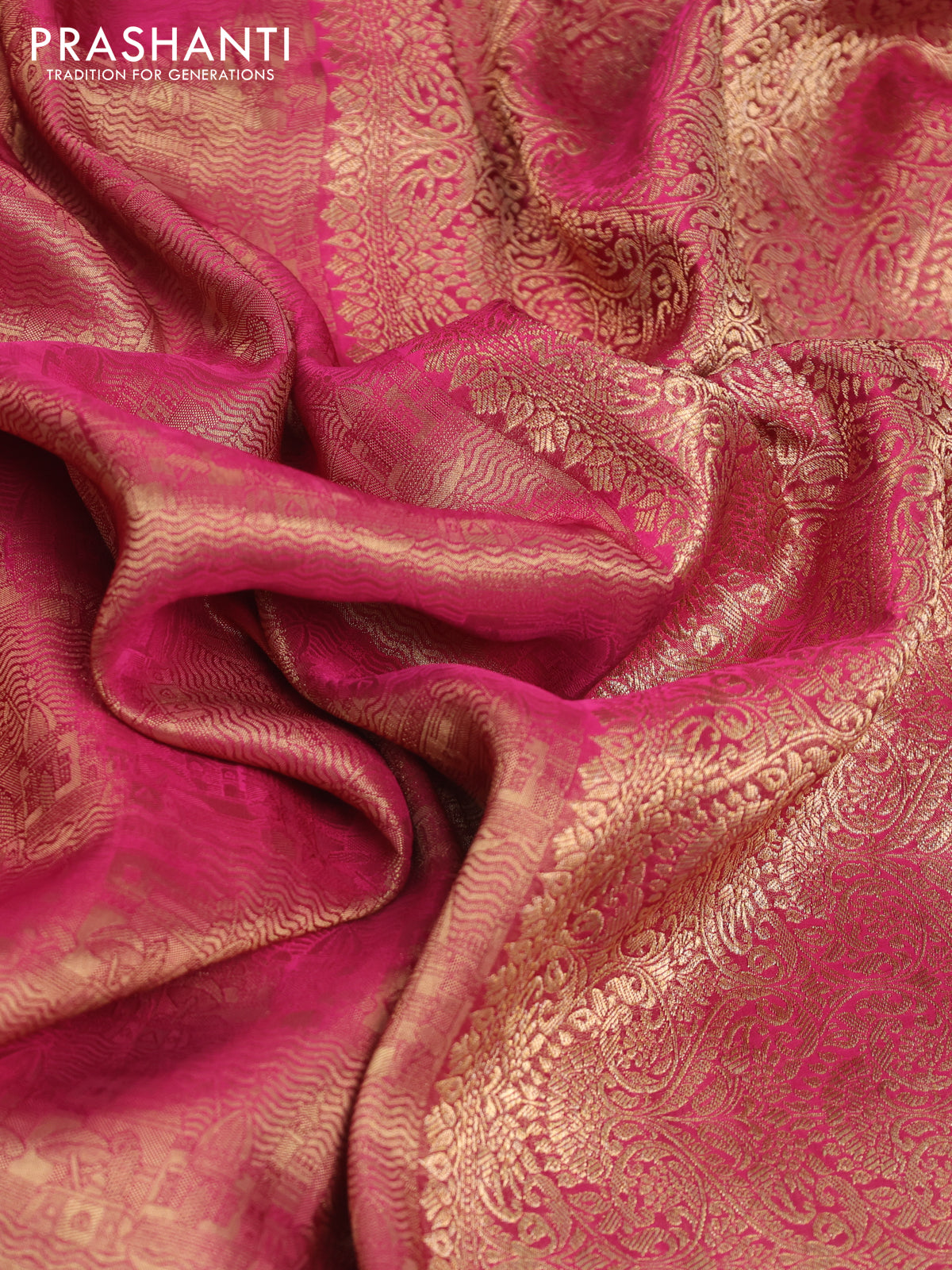 Banarasi semi crepe saree dual shade of pink with allover zari woven brocade weaves and lace work border