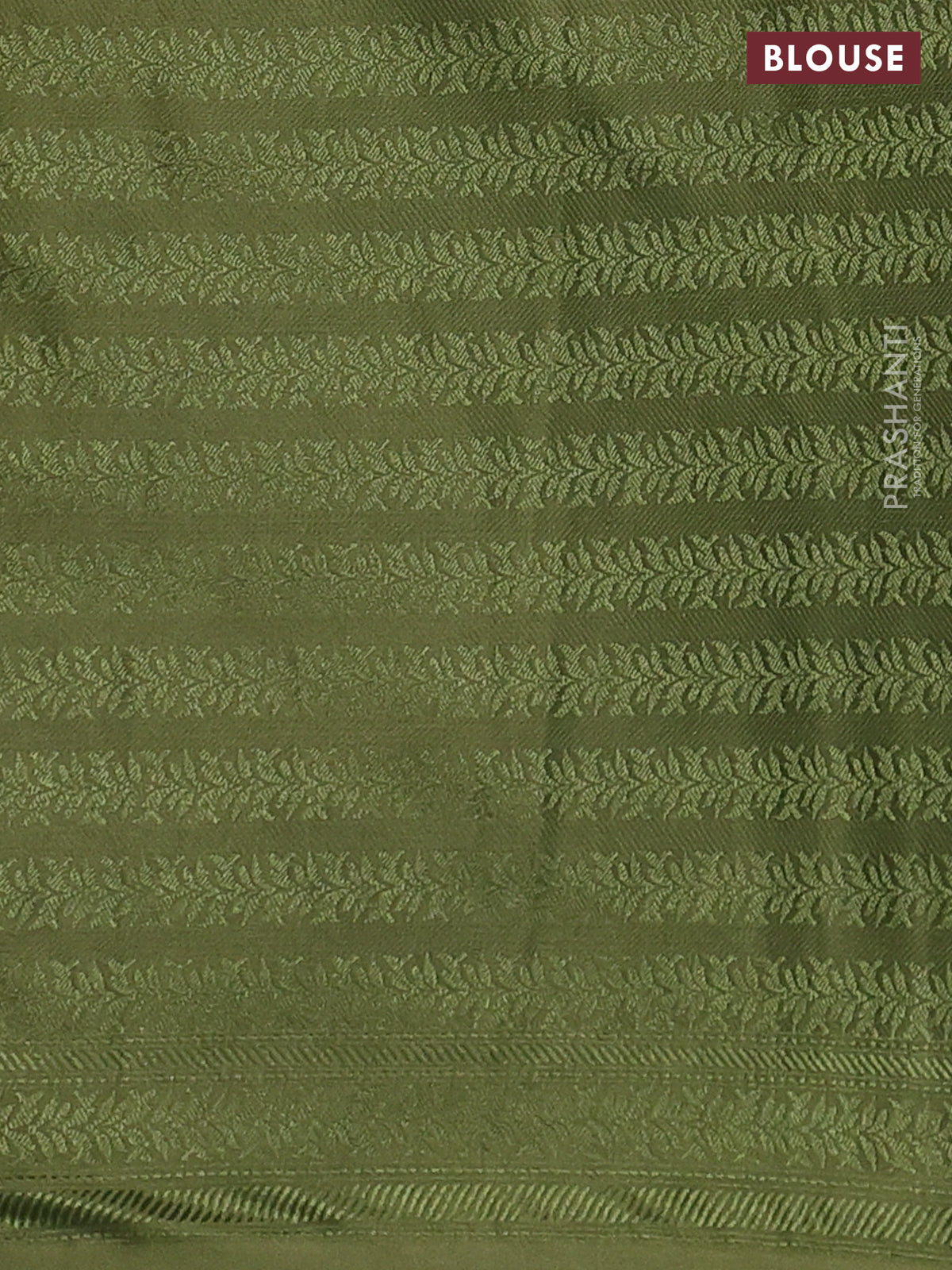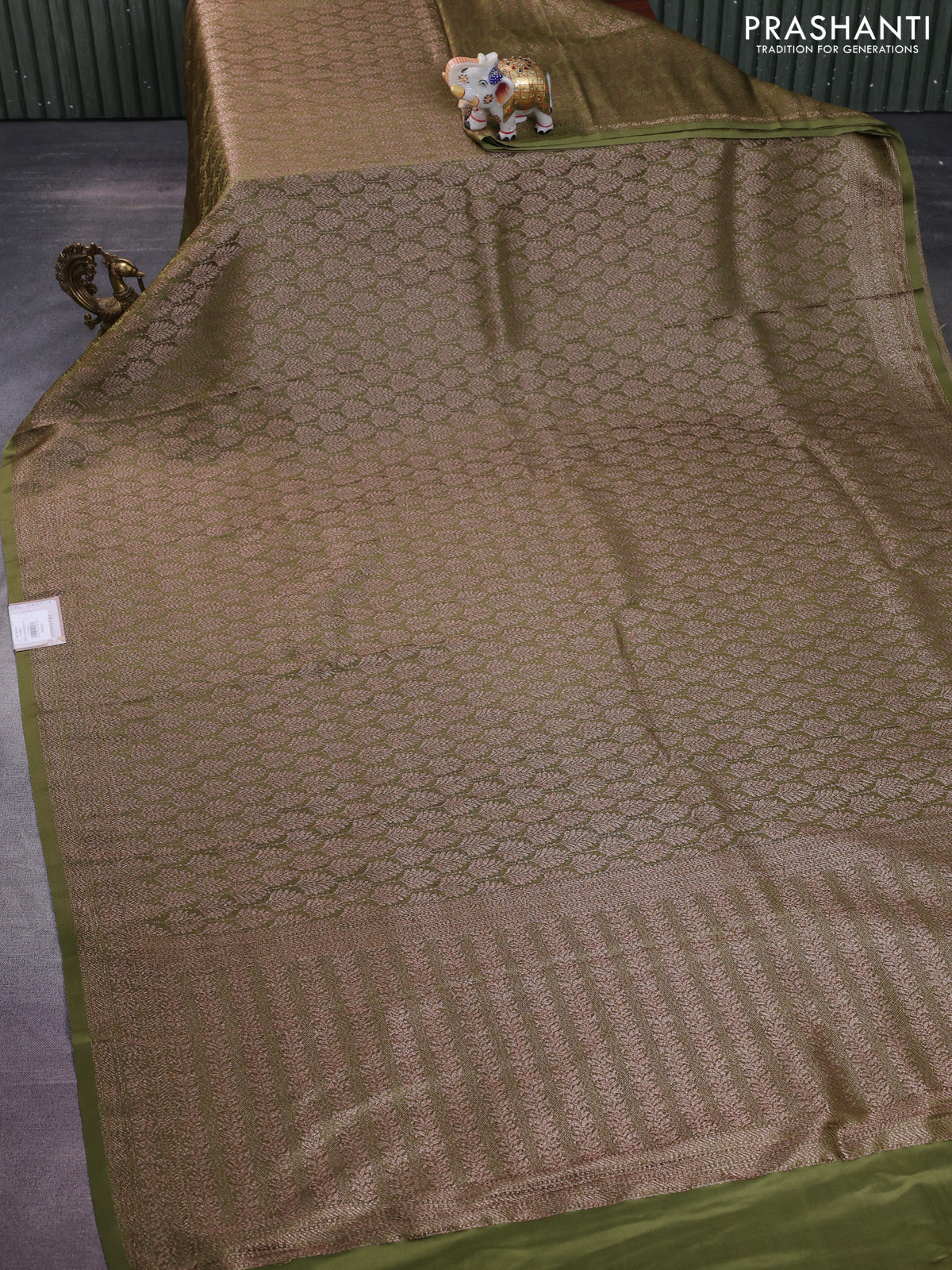 Banarasi semi crepe saree mehendi green with allover thread & zari woven brocade weaves and woven border