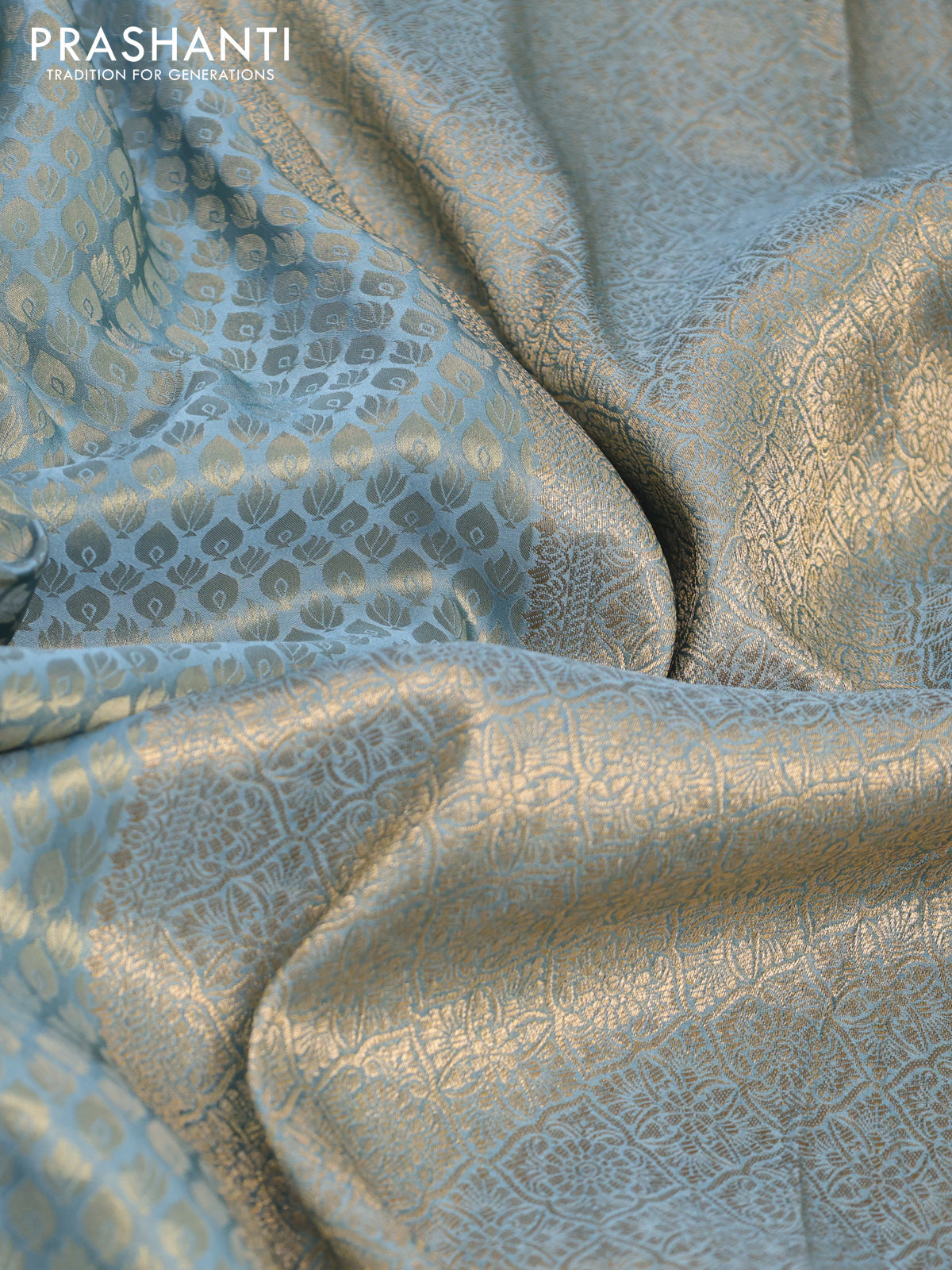 Banarasi semi crepe saree pastel blue with allover zari woven brocade weaves and lace work border