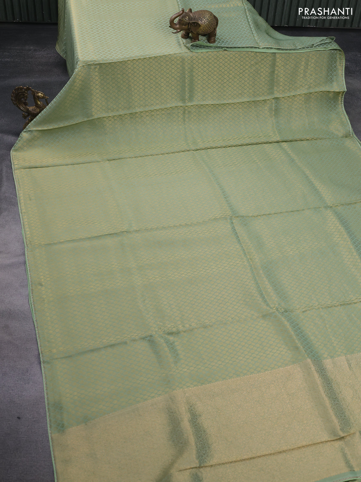 Banarasi semi crepe saree pastel green with allover zari woven brocade weaves and lace work border