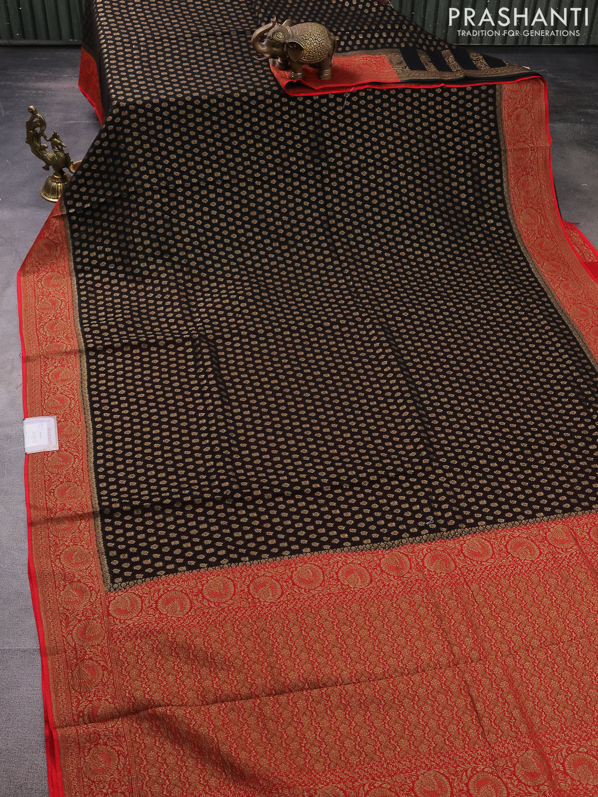 Banarasi semi georgette saree black and red with allover thread & zari woven buttas and woven border