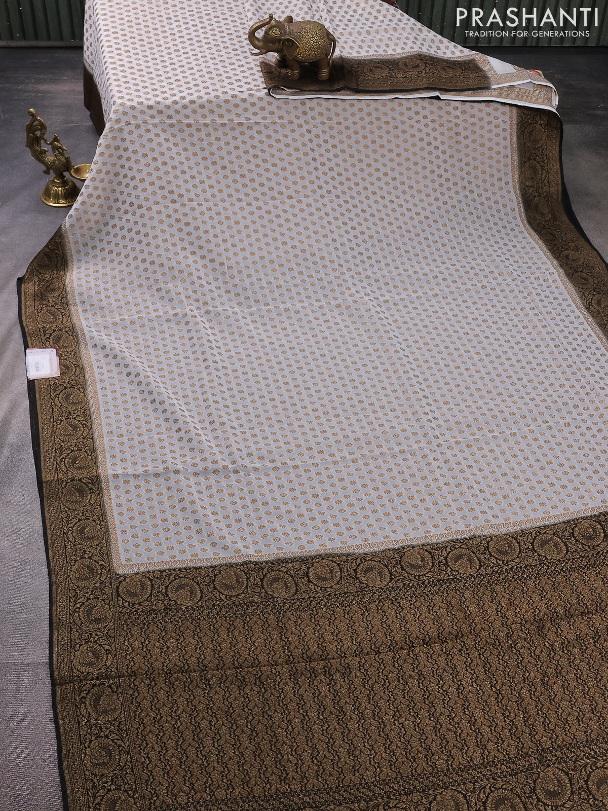 Banarasi semi georgette saree grey and black with allover thread & zari woven buttas and woven border