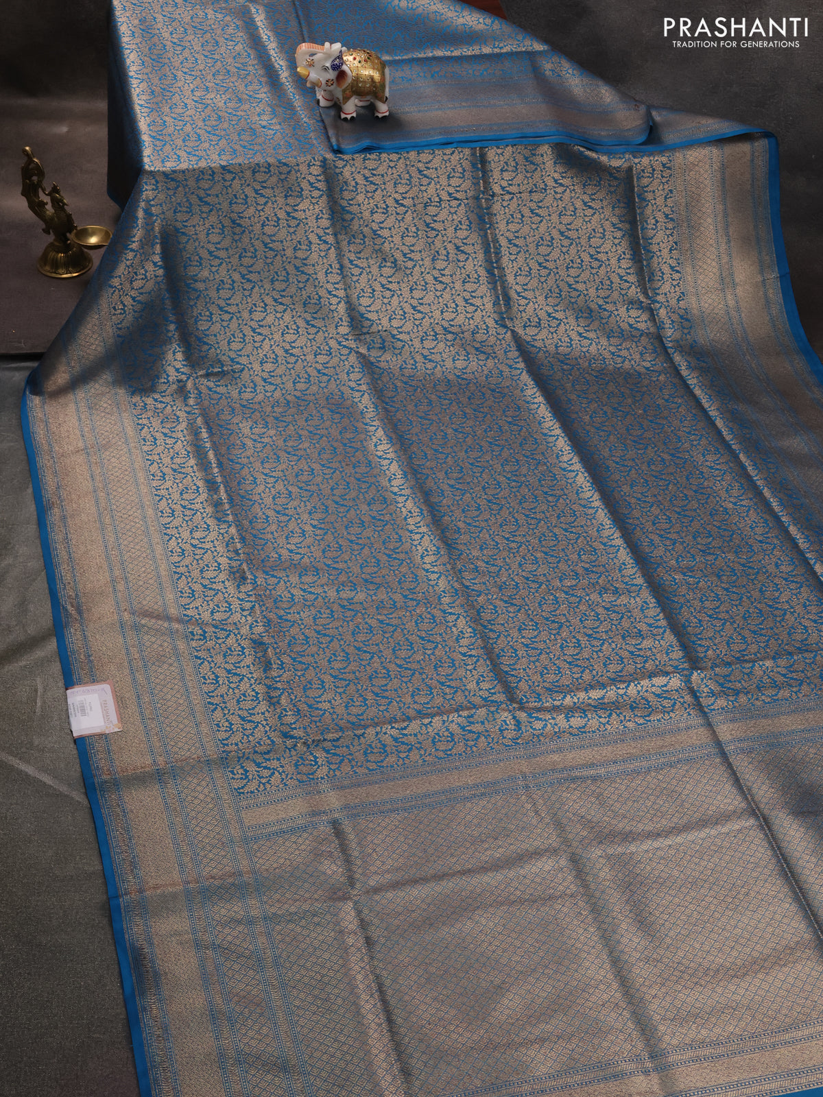 Banarasi semi katan saree cs blue with allover thread & zari brocade weaves and woven border