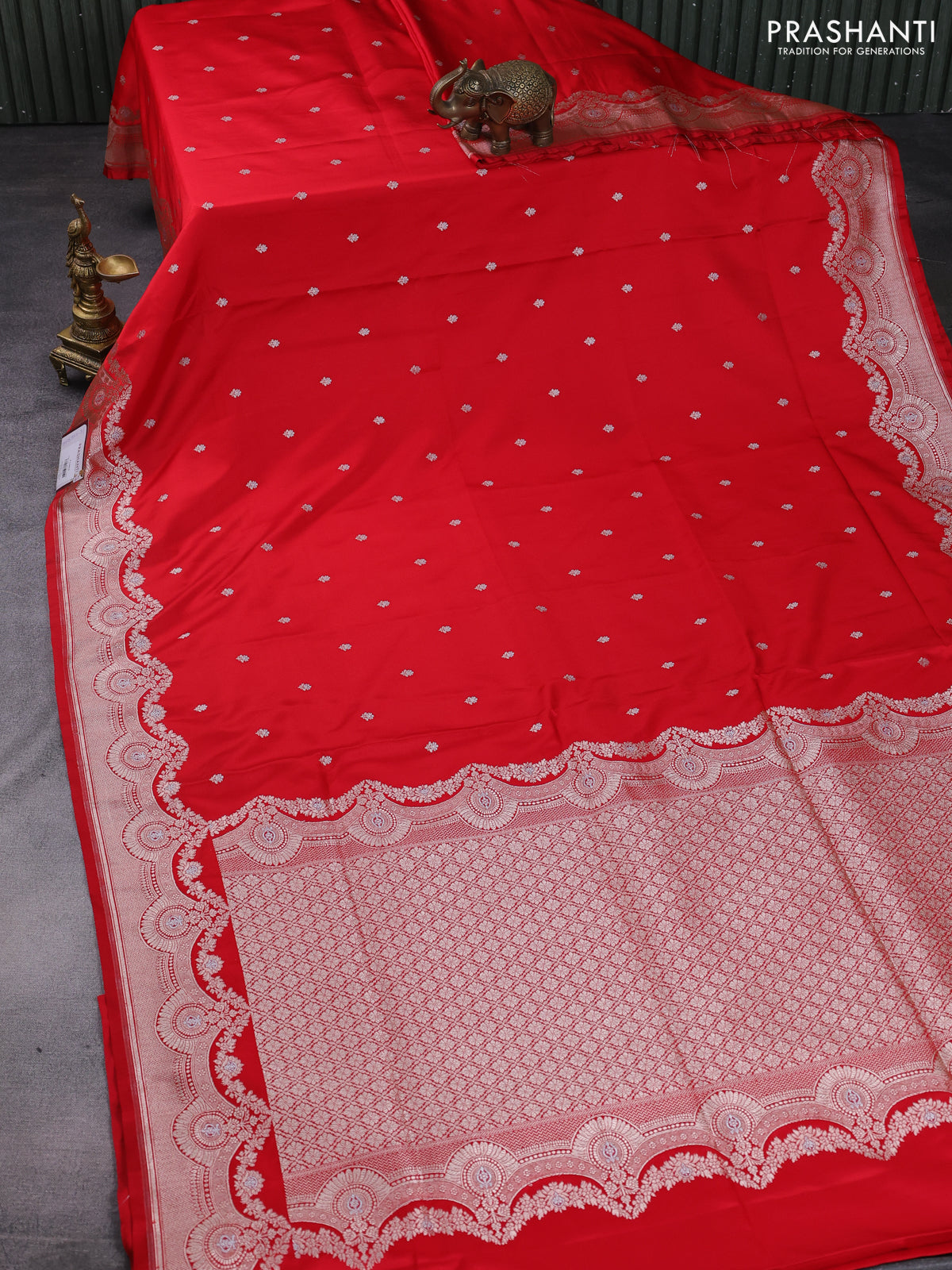 Banarasi semi katan saree red with silver & gold zari woven buttas and rich zari woven border