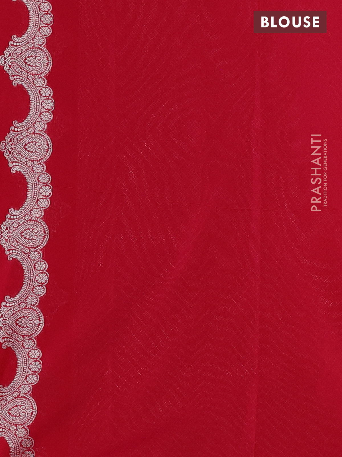 Banarasi semi katan saree reddish pink with silver & gold zari weaves and zari woven border