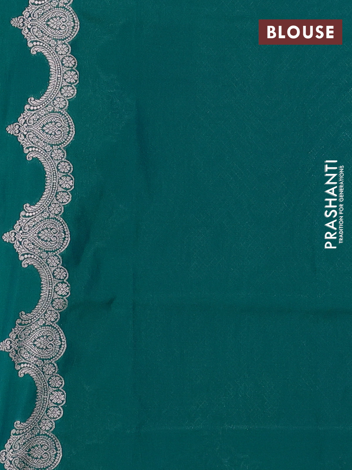 Banarasi semi katan saree teal green with silver & gold zari weaves and zari woven border