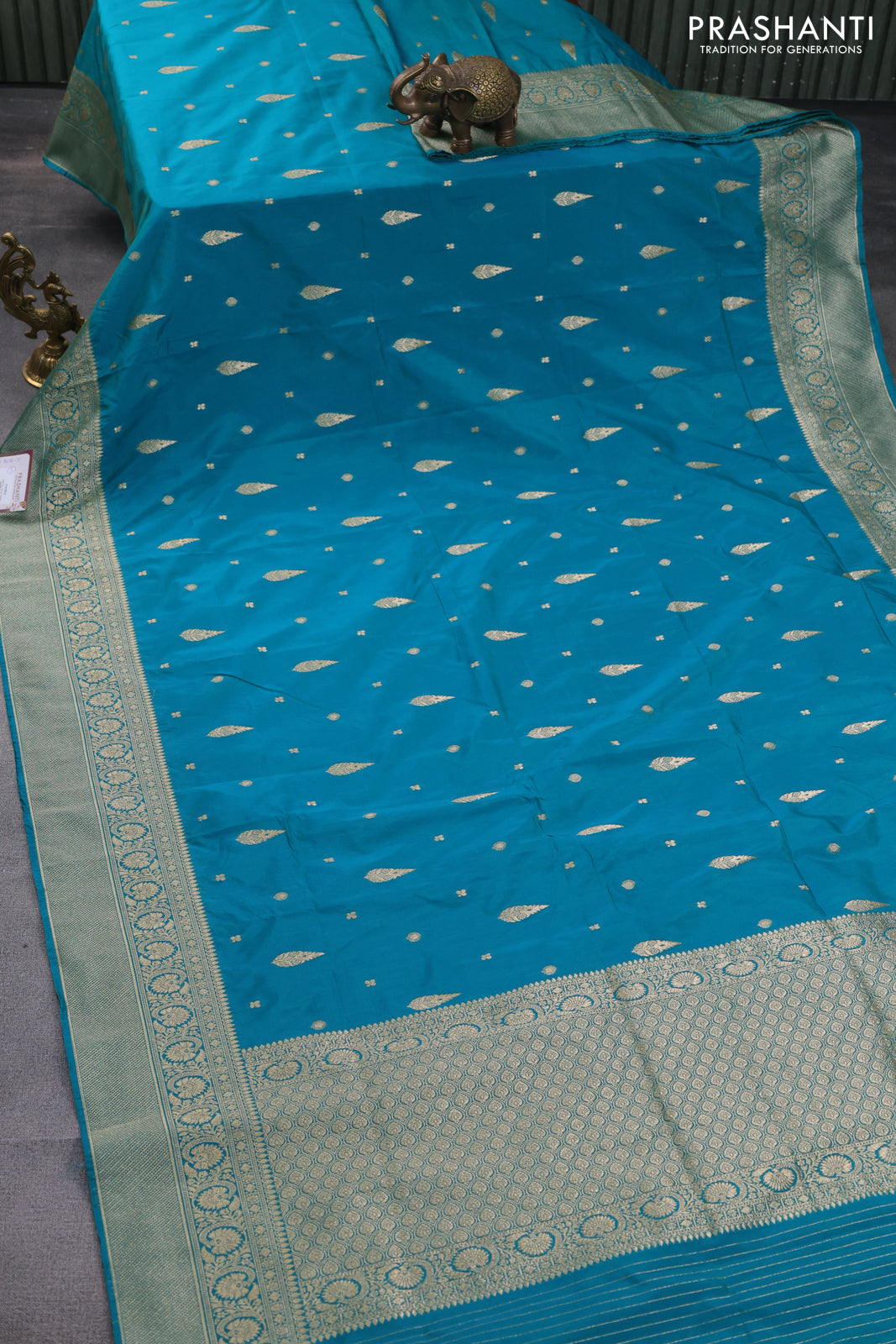 Banarasi semi katan silk saree dual shade of teal blue with zari woven buttas and rich zari woven border