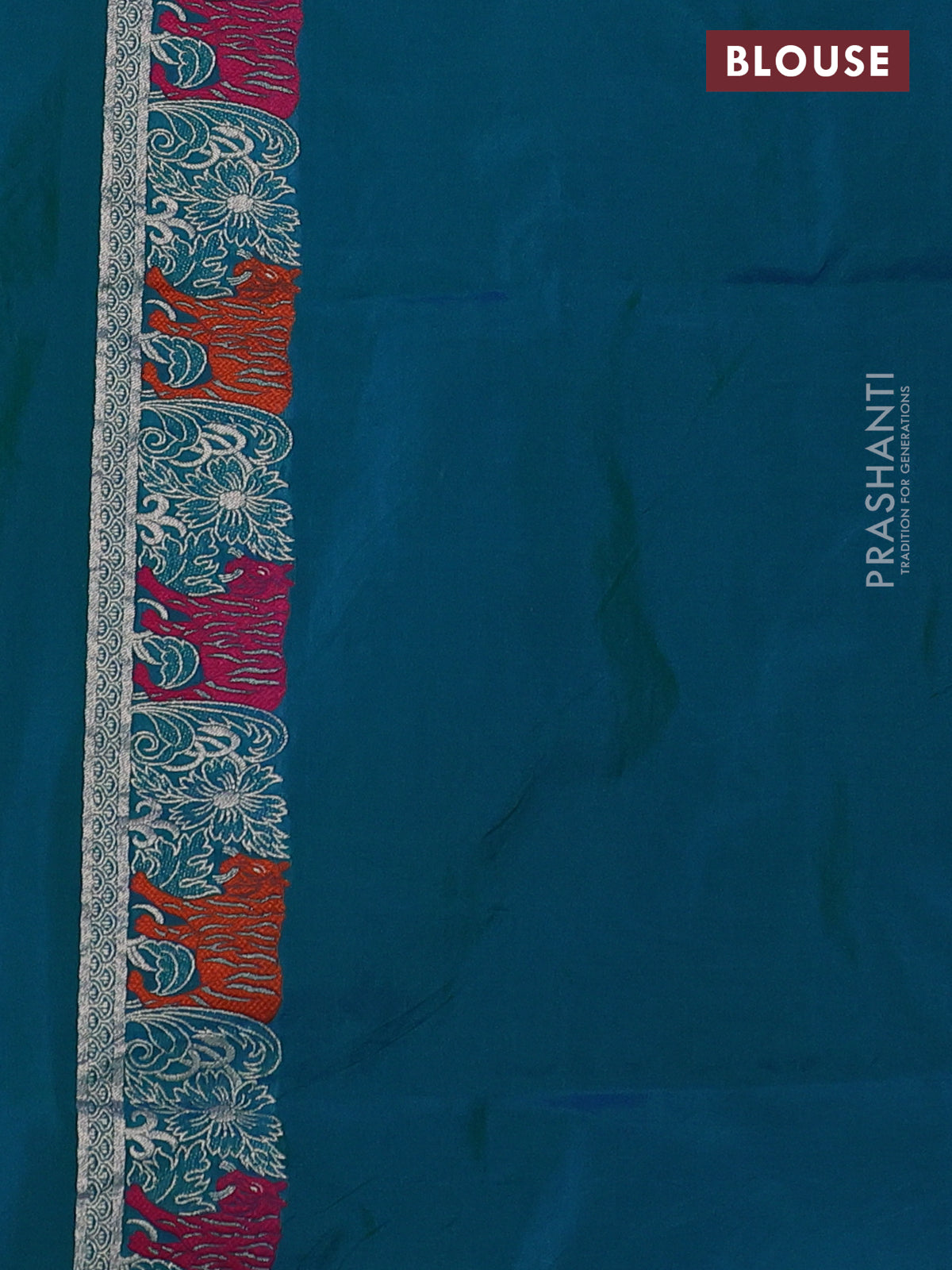 Banarasi semi katan silk saree dual shade of teal bluish green with allover zari weaves and thread & zari woven border