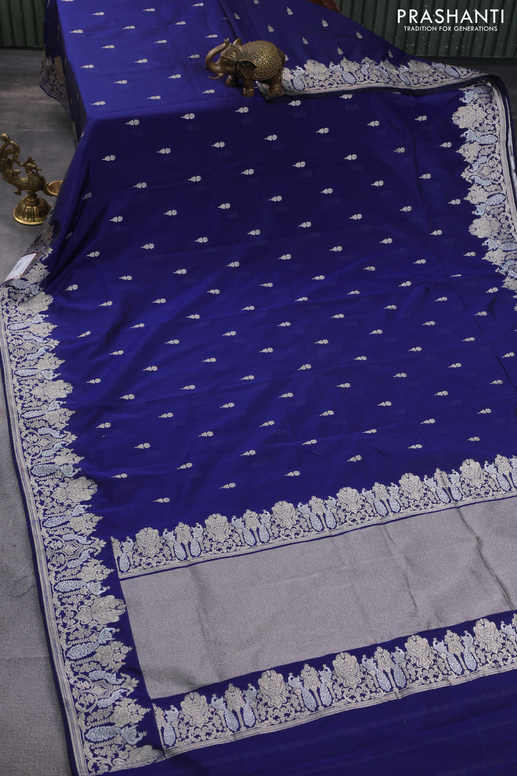 Banarasi semi katan silk saree navy blue with zari woven buttas and zari woven border