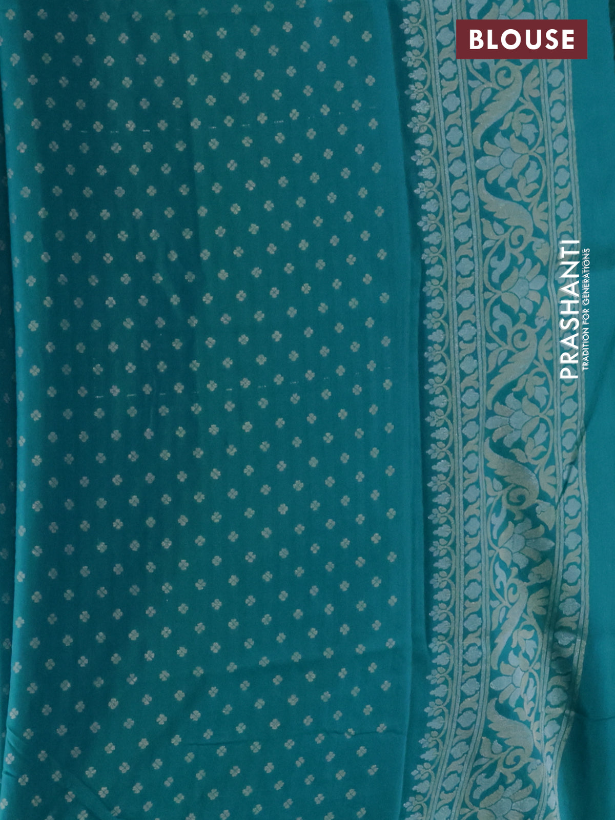 Banarasi semi katan silk saree teal green with allover jamdhani weaves and rich zari woven border