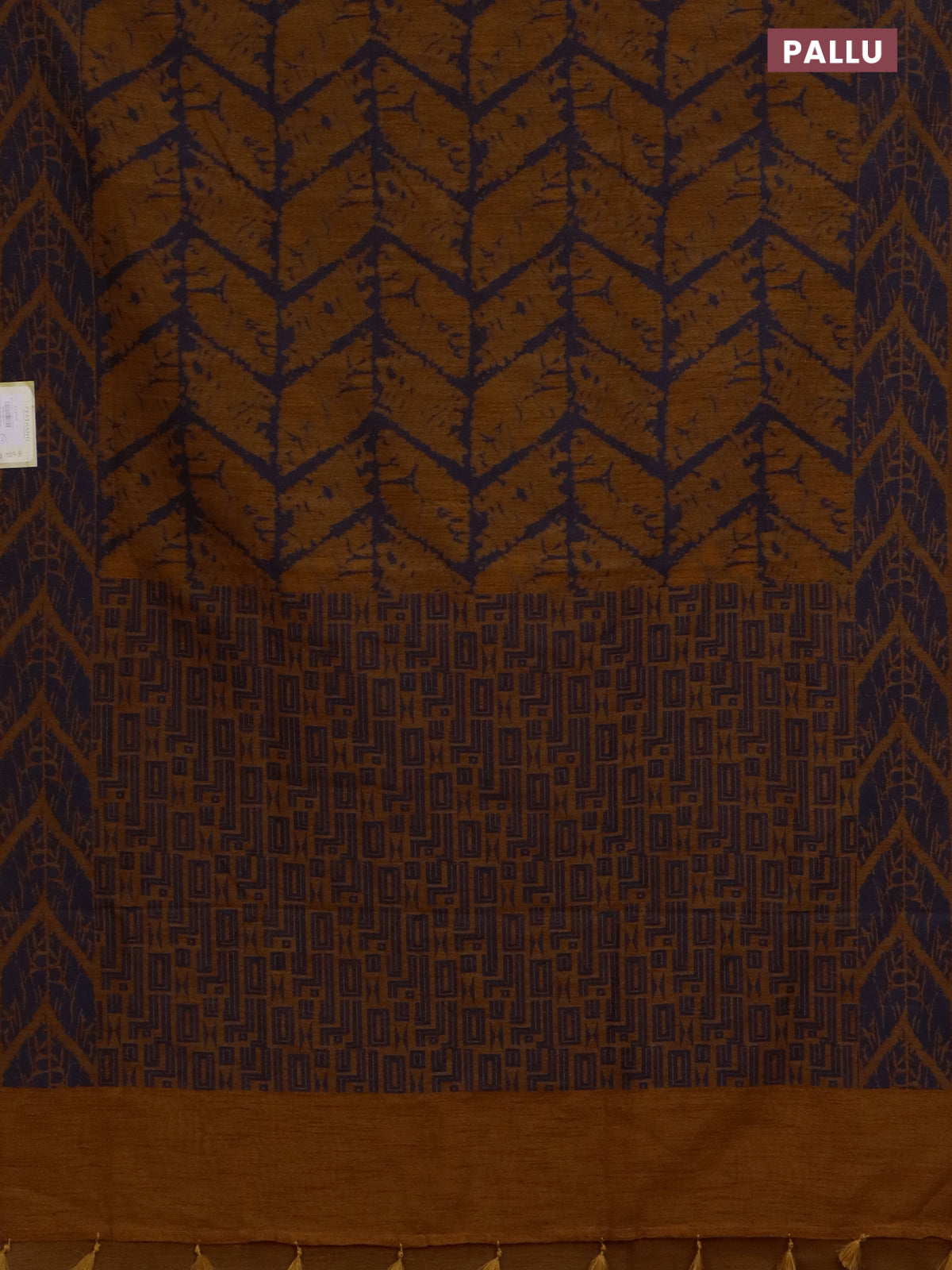 Banarasi semi matka saree dark mustard and blue with allover thread weaves and thread woven border