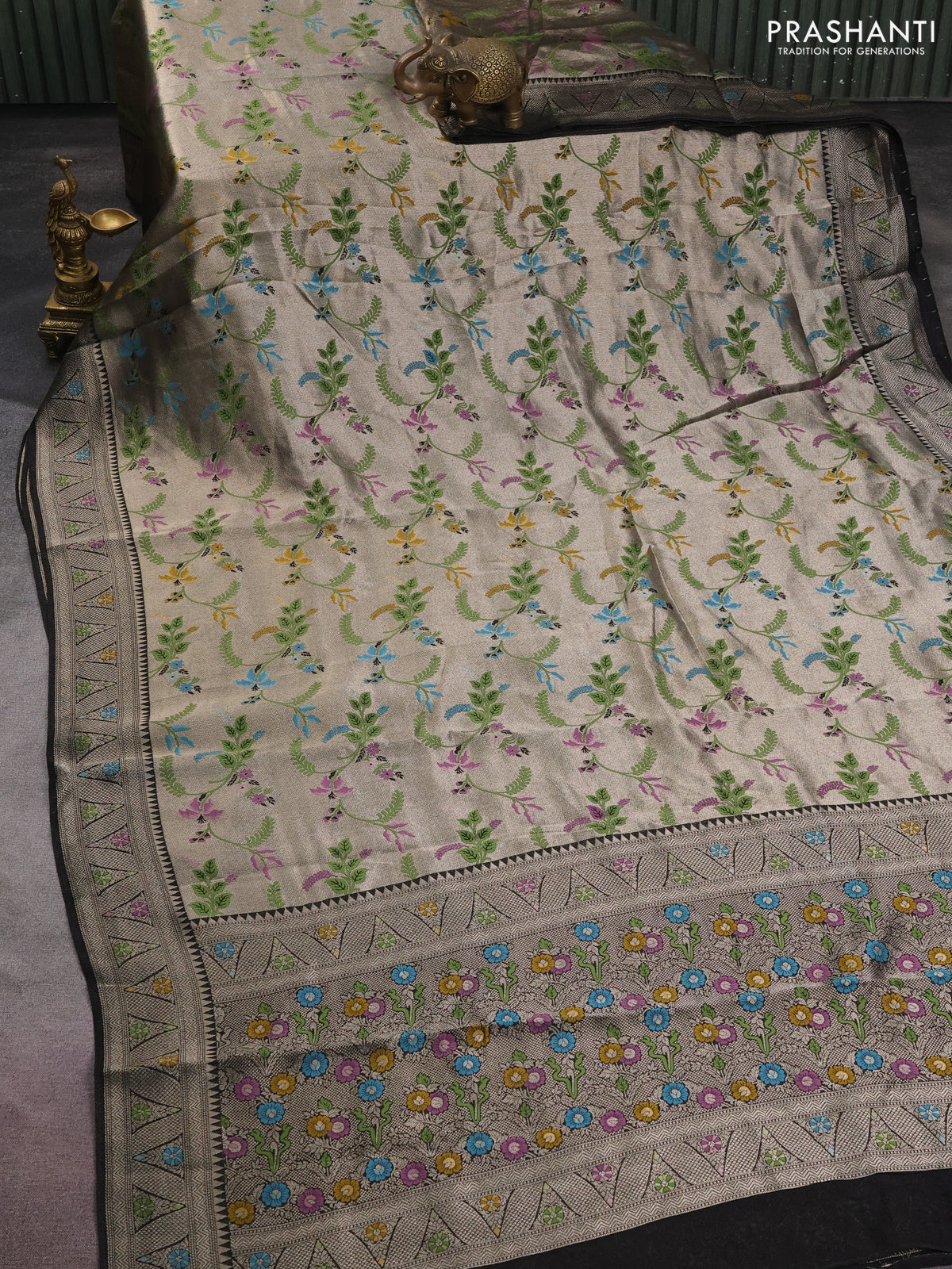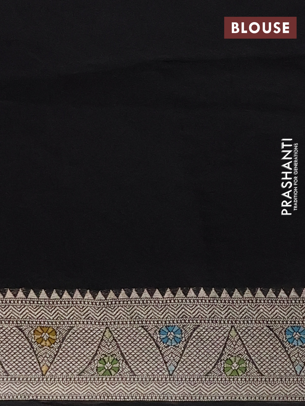 Banarasi semi raw silk saree black with allover silver zari woven paithani weaves and silver zari woven border