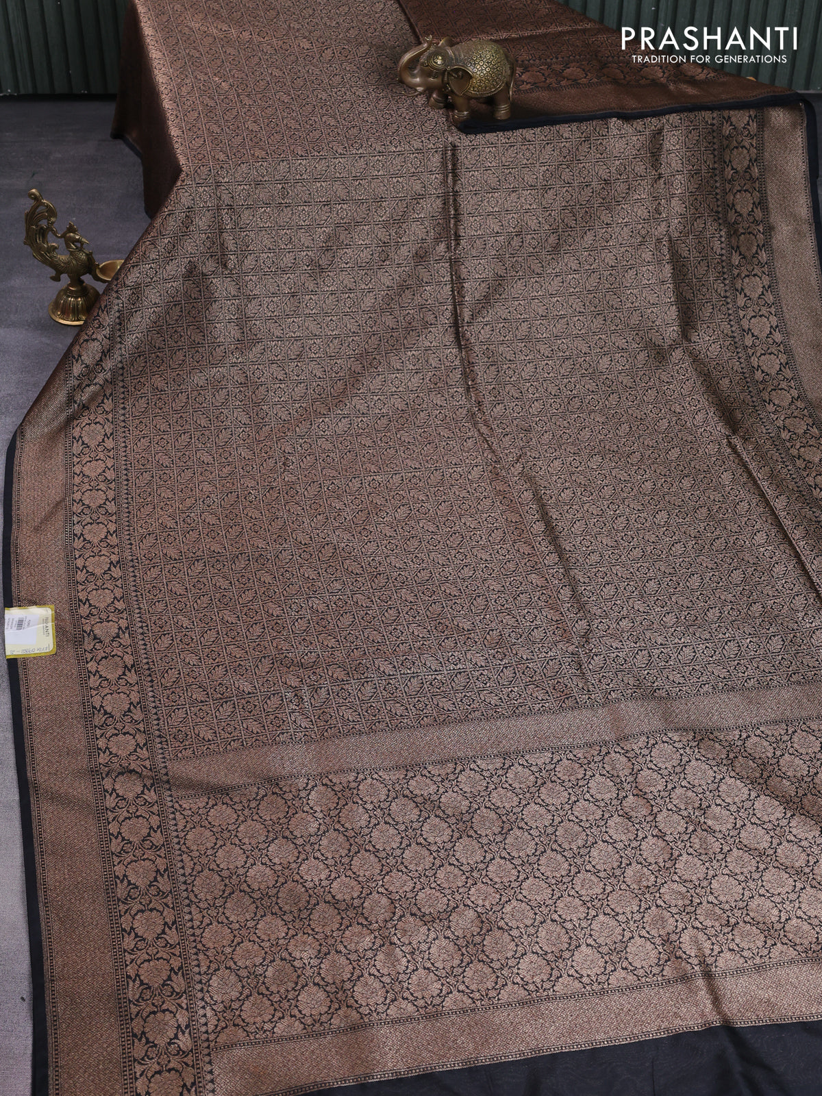 Banarasi semi silk saree black with allover thread & zari weaves and woven border