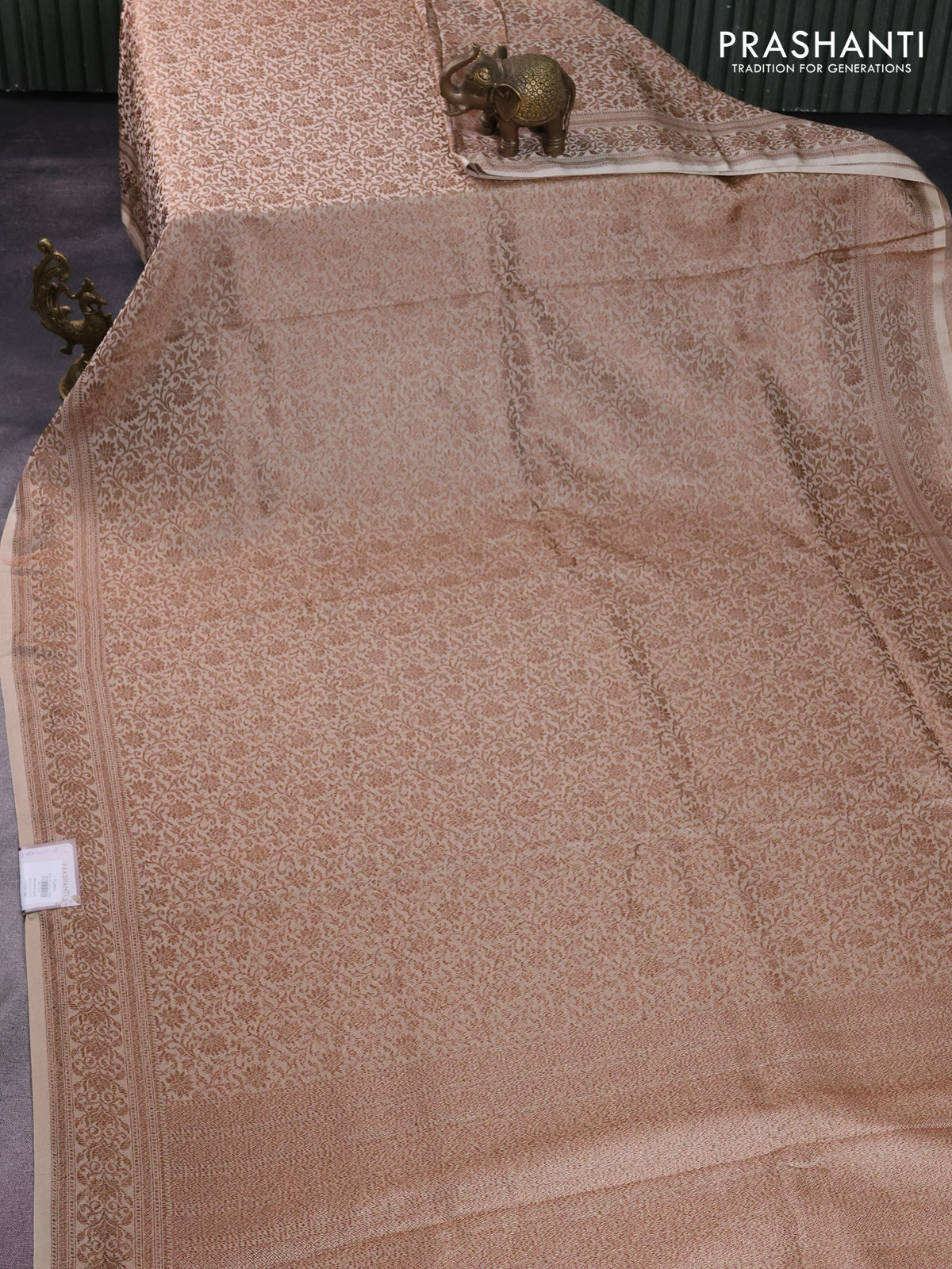 Banarasi semi silk saree cream with allover thread & zari woven butta weaves and woven border