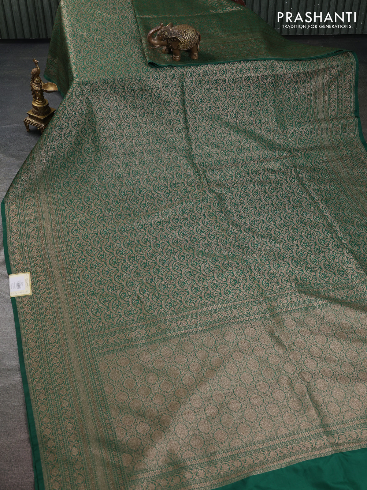 Banarasi semi silk saree green with allover thread & zari weaves and woven border