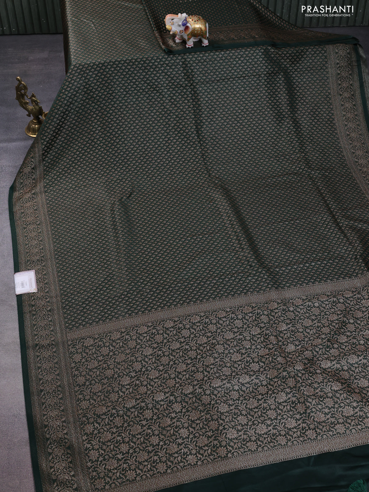 Banarasi semi silk saree green with allover thread & zari woven butta weaves and woven border