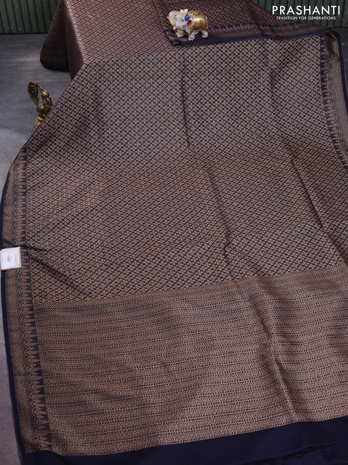 Banarasi semi silk saree navy blue with allover thread & zari weaves and woven border