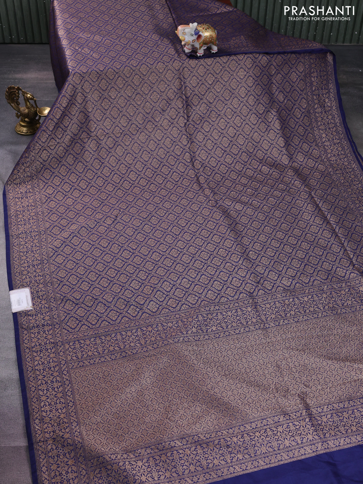 Banarasi semi silk saree navy blue with allover thread & zari weaves and woven border
