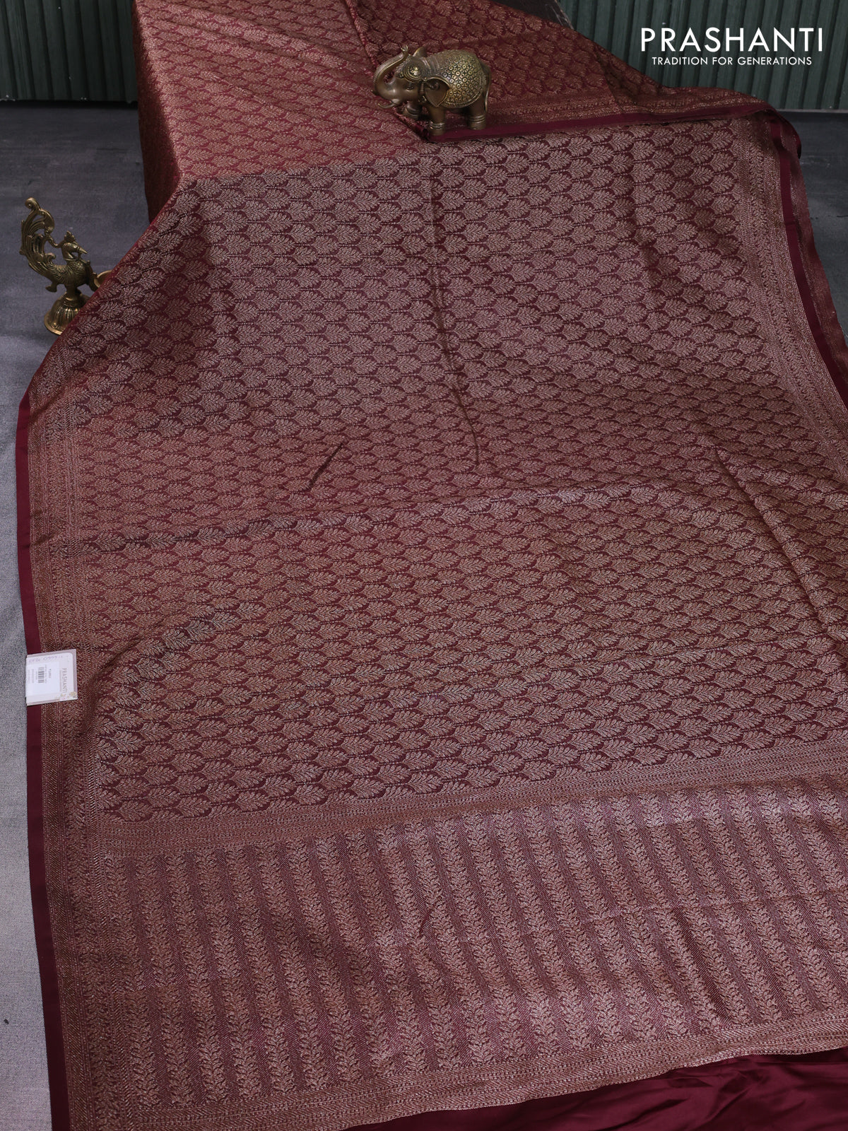 Banarasi semi silk saree wine shade with allover thread & zari weaves and woven border