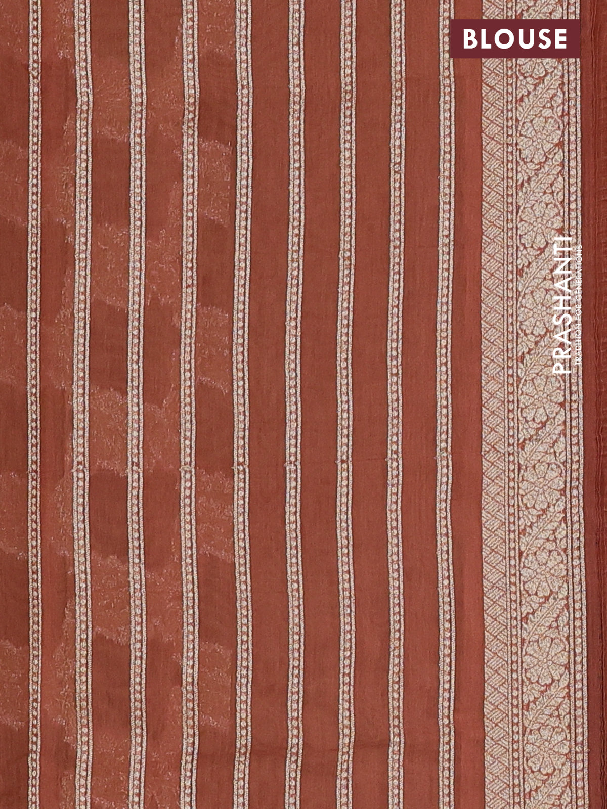 Banarasi silk cotton saree pastel green and rust shade with allover thread & zari weaves and woven border