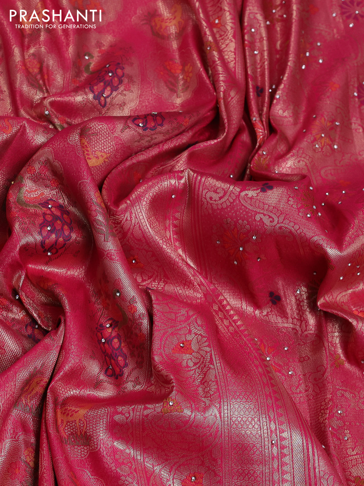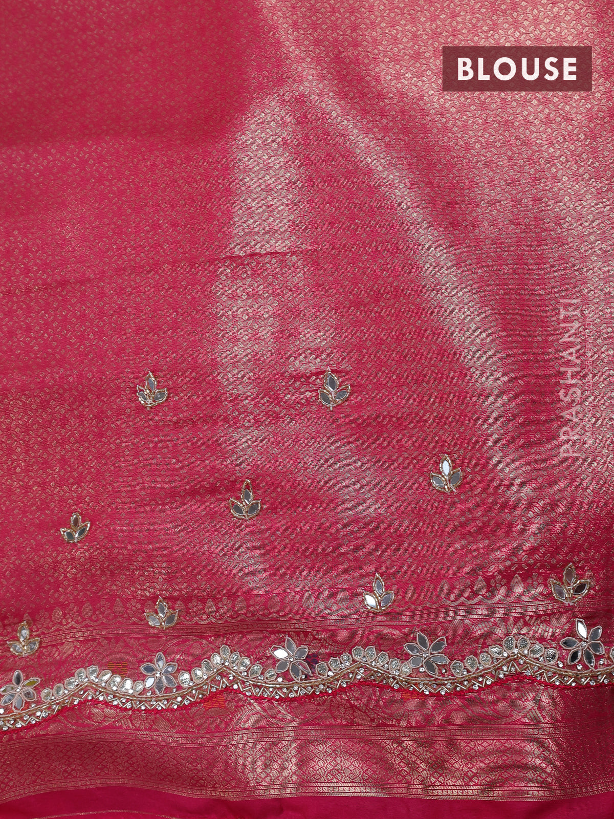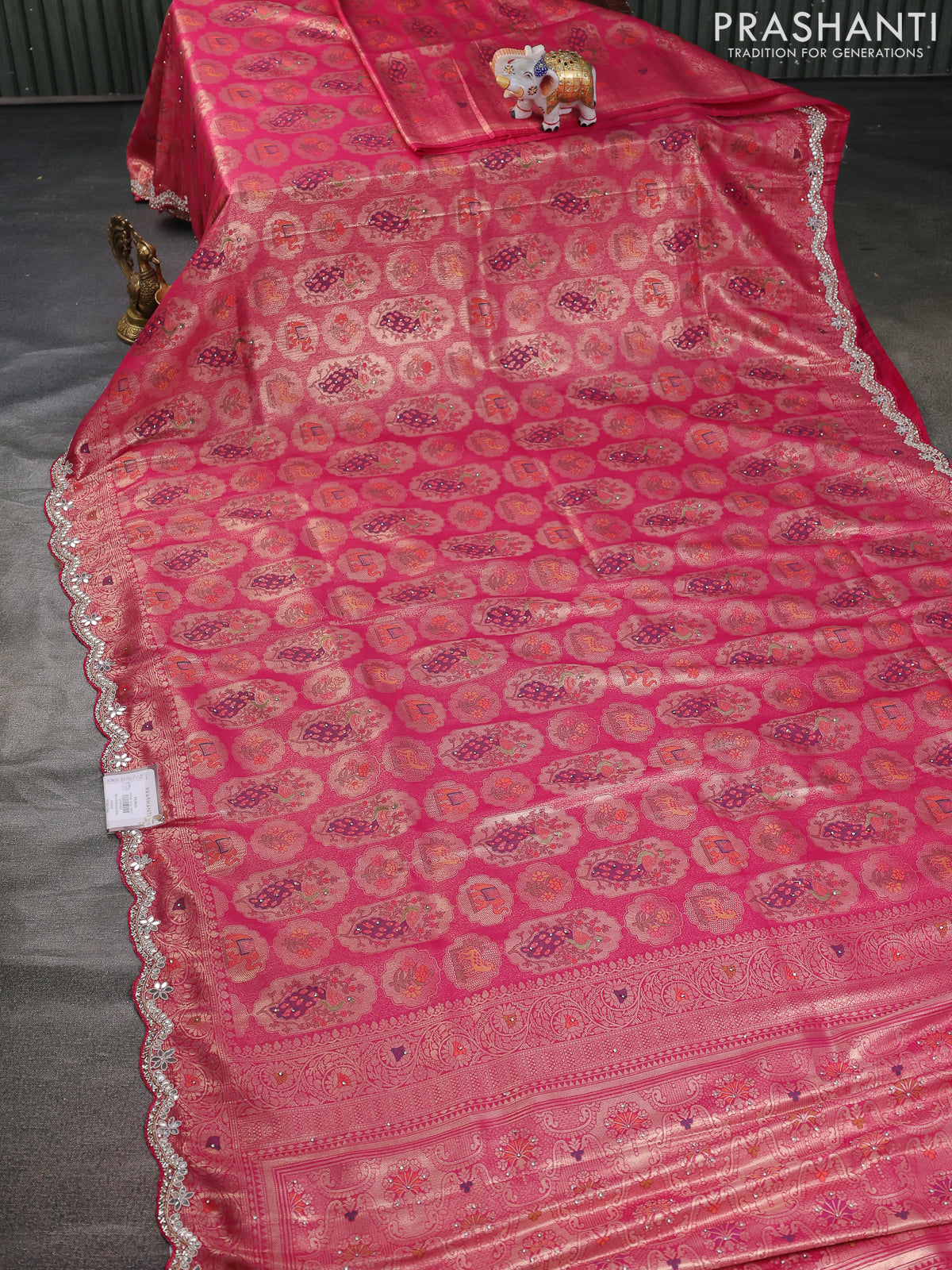Banarasi silk saree pink with allover zari woven brocade weaves and zaridosi gotapatti work border