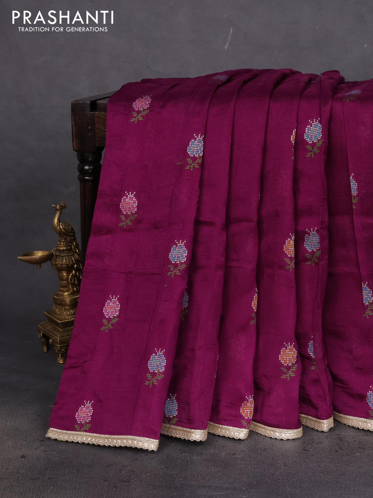 Banarasi silk saree purple with thread & zari woven floral buttas and gotapatti work pallu