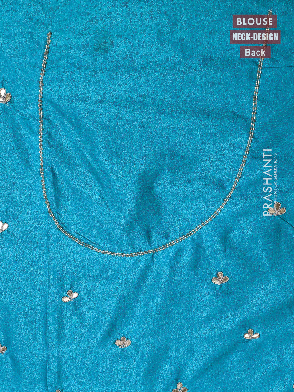 Banarasi silk saree teal blue shade with allover zari woven brocade weaves and zaridosi gotapatti work border