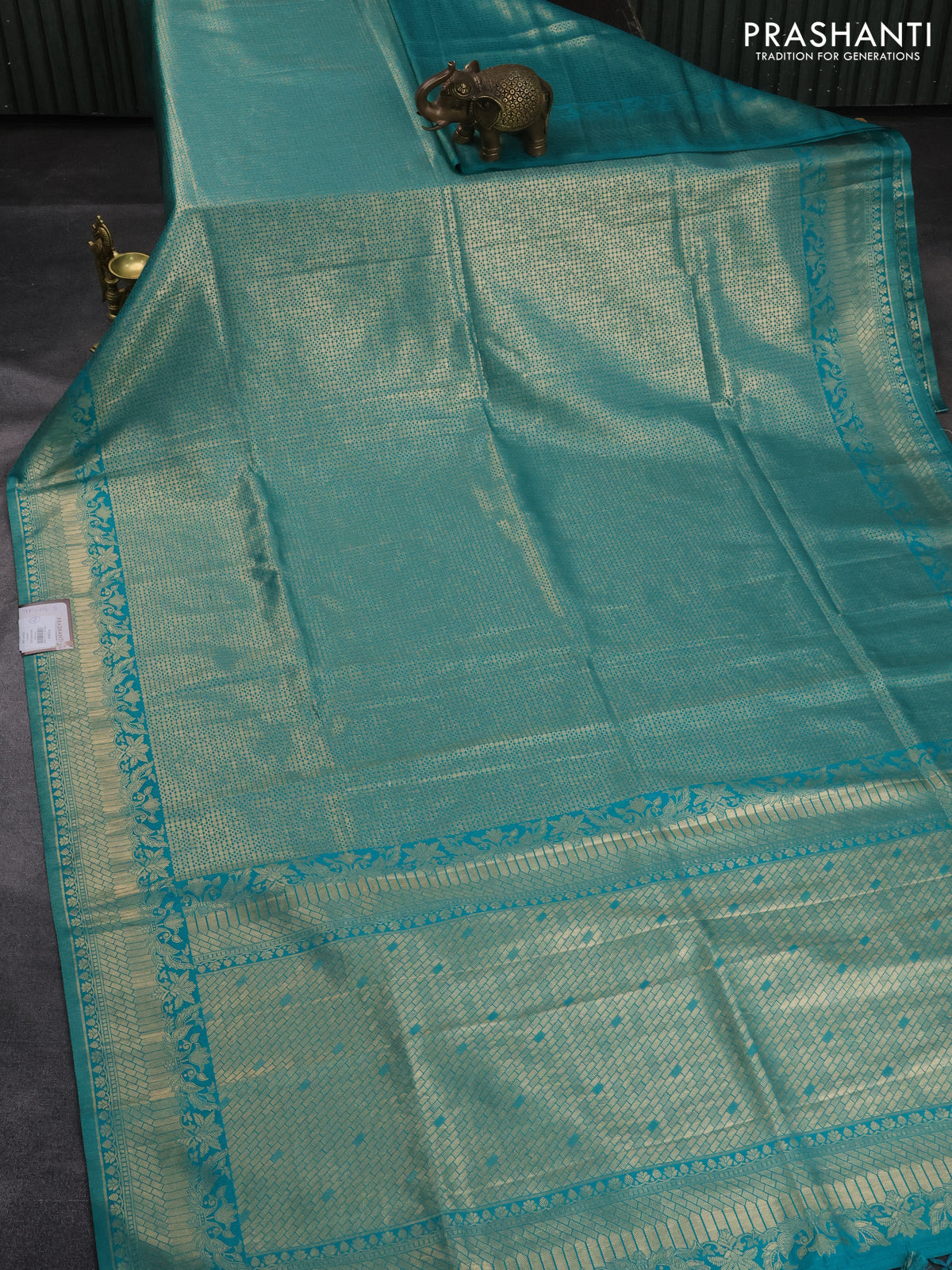 Banarasi silk saree teal green shade with allover zari woven brocade weaves and zari woven border