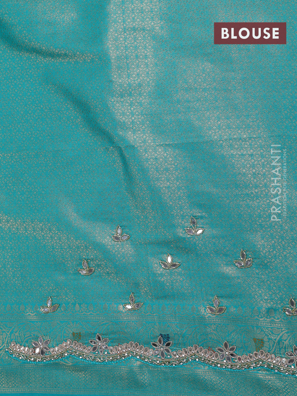 Banarasi silk saree teal green shade with allover zari woven brocade weaves and zaridosi gotapatti work border