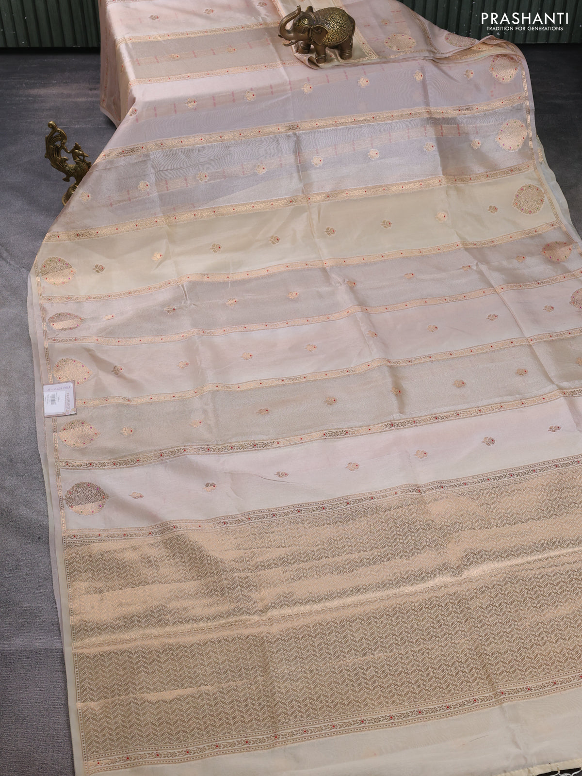 Banarasi tissue semi silk saree beige with zari weaves & buttas and zari woven butta border