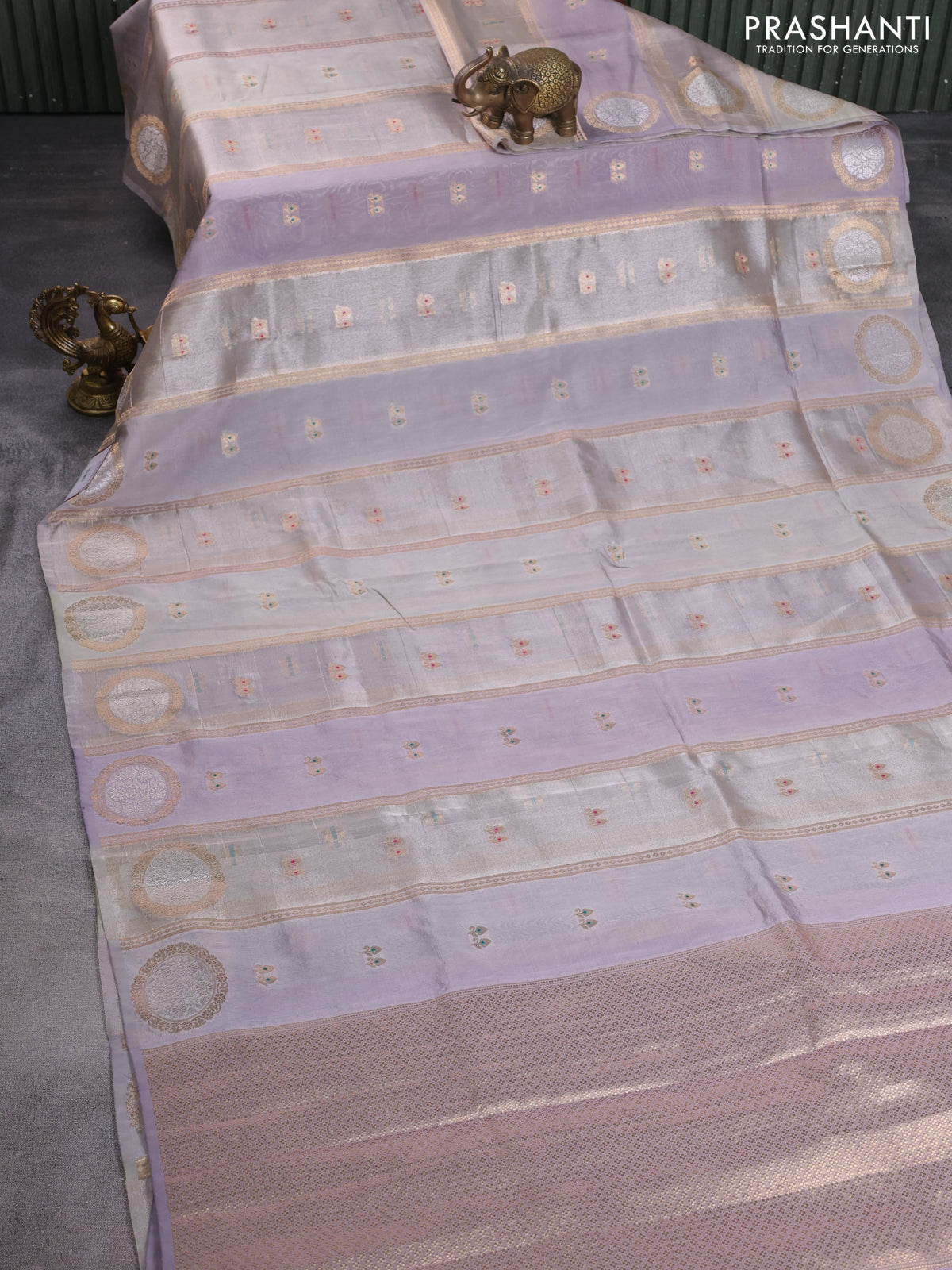 Banarasi tissue semi silk saree pastel grey with zari weaves & buttas and zari woven butta border