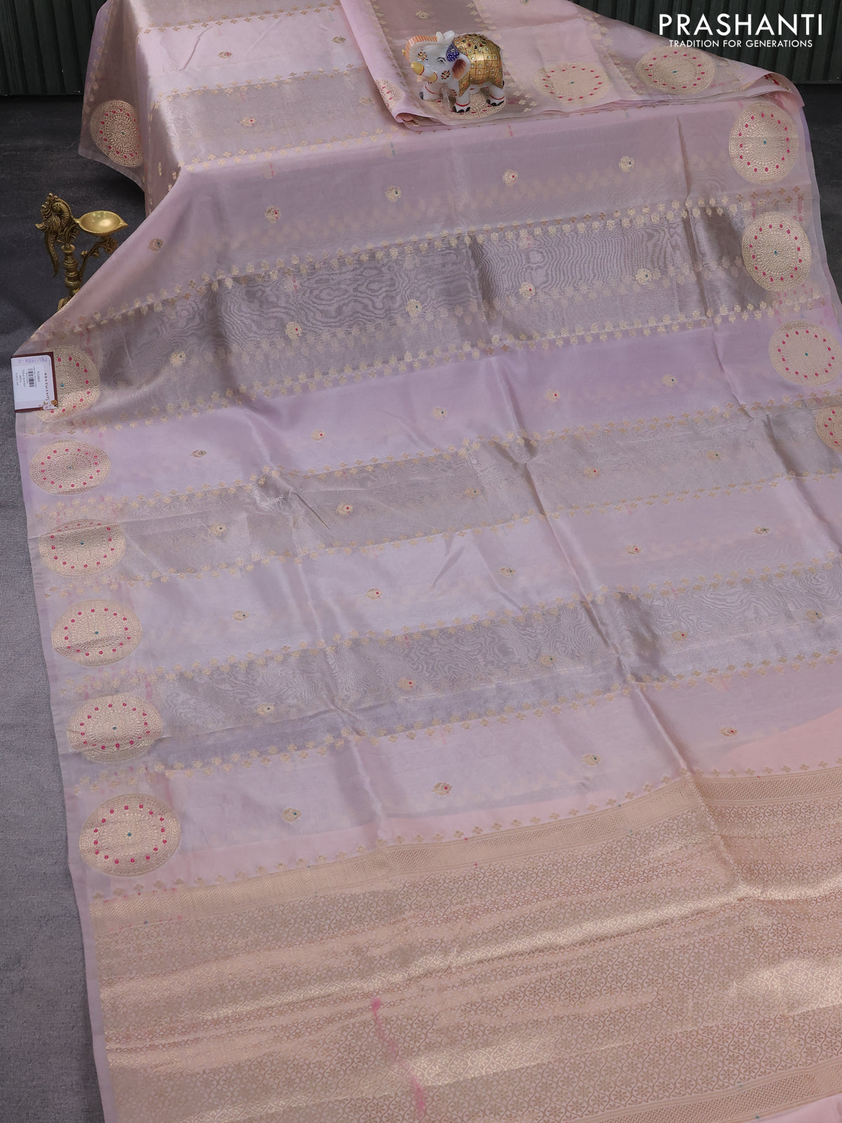Banarasi tissue semi silk saree pastel lavender and peach pink with zari weaves & buttas and zari woven butta border