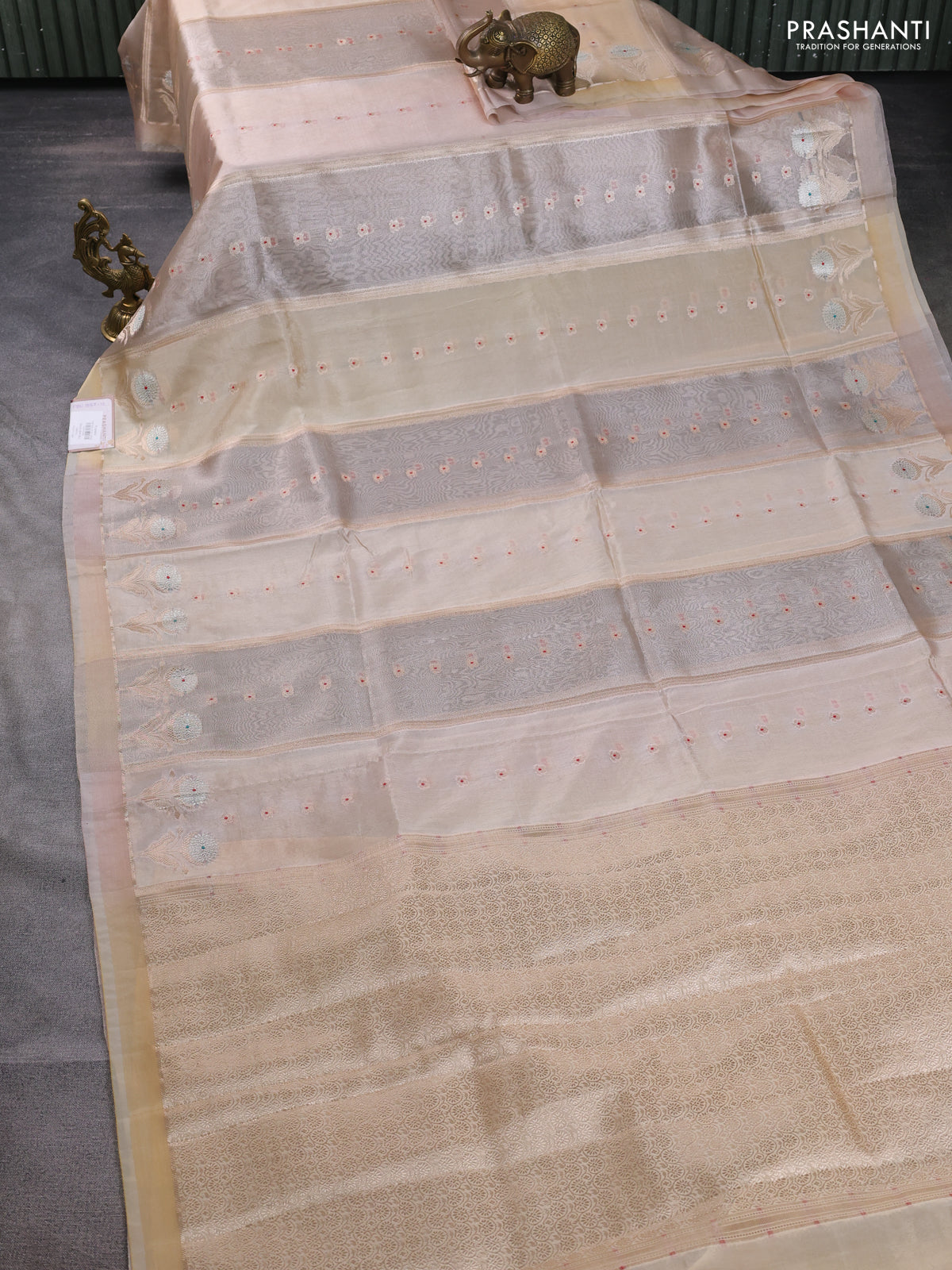 Banarasi tissue semi silk saree sandal with zari weaves & buttas and floral zari woven butta border
