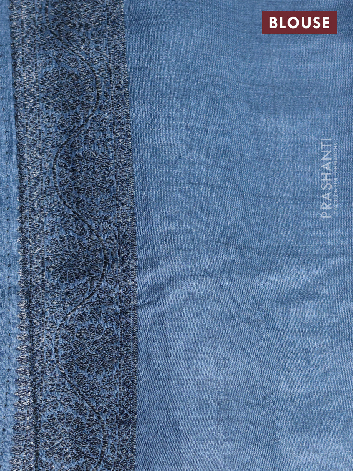 Banarasi tussar silk saree pastel blue with woven buttas & floral digital prints in borderless style