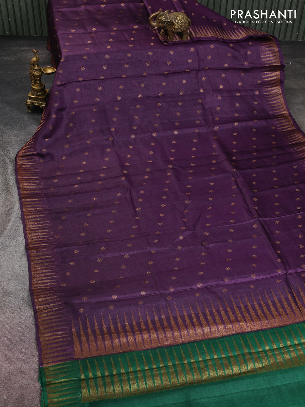 Banarasi tussar silk saree purple and green with thread & zari woven buttas and temple design woven border