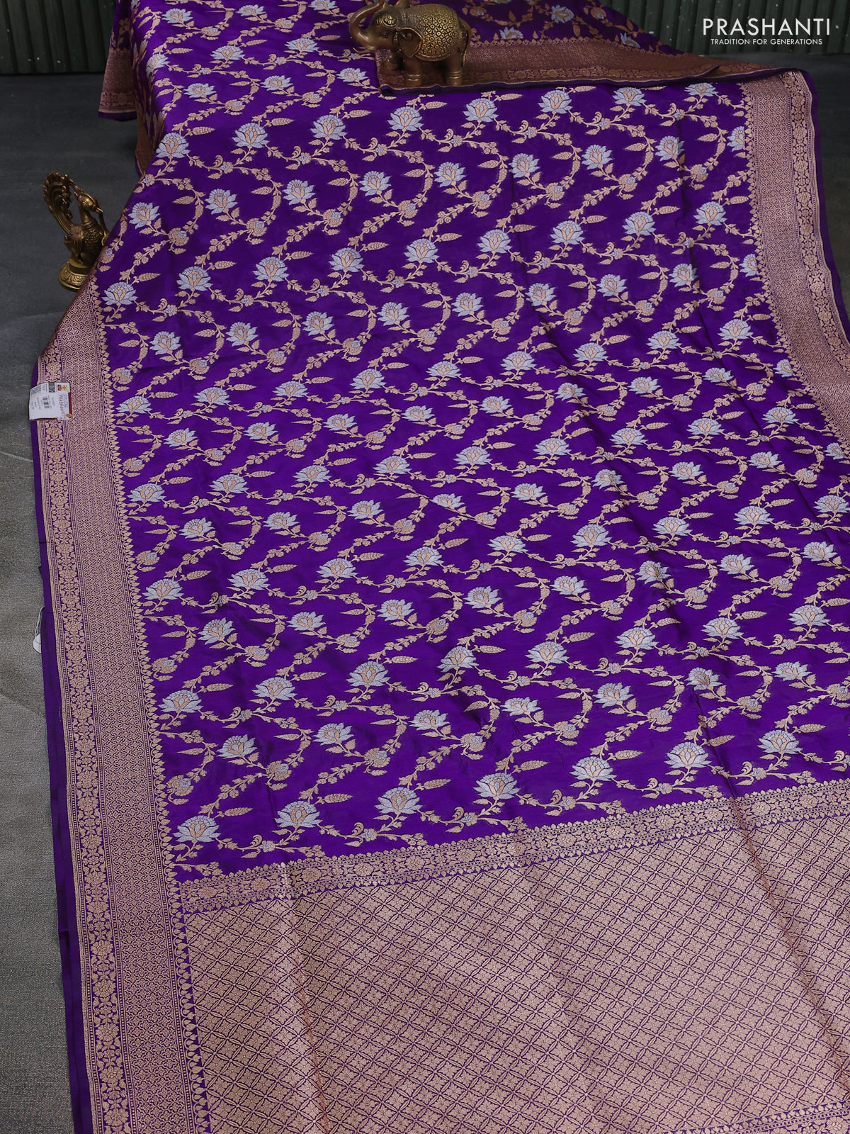 Banarasi uppada silk saree purple with allover silver & gold zari woven floral brocade weaves and zari woven border